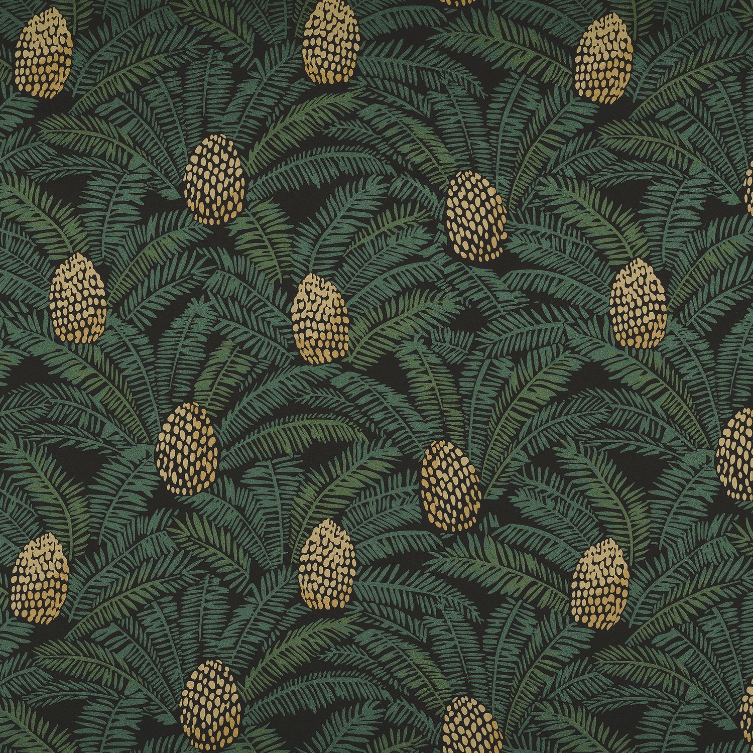 Structural wallpaper with a botanical motif PALMETA - SAPIN green with muted yellow