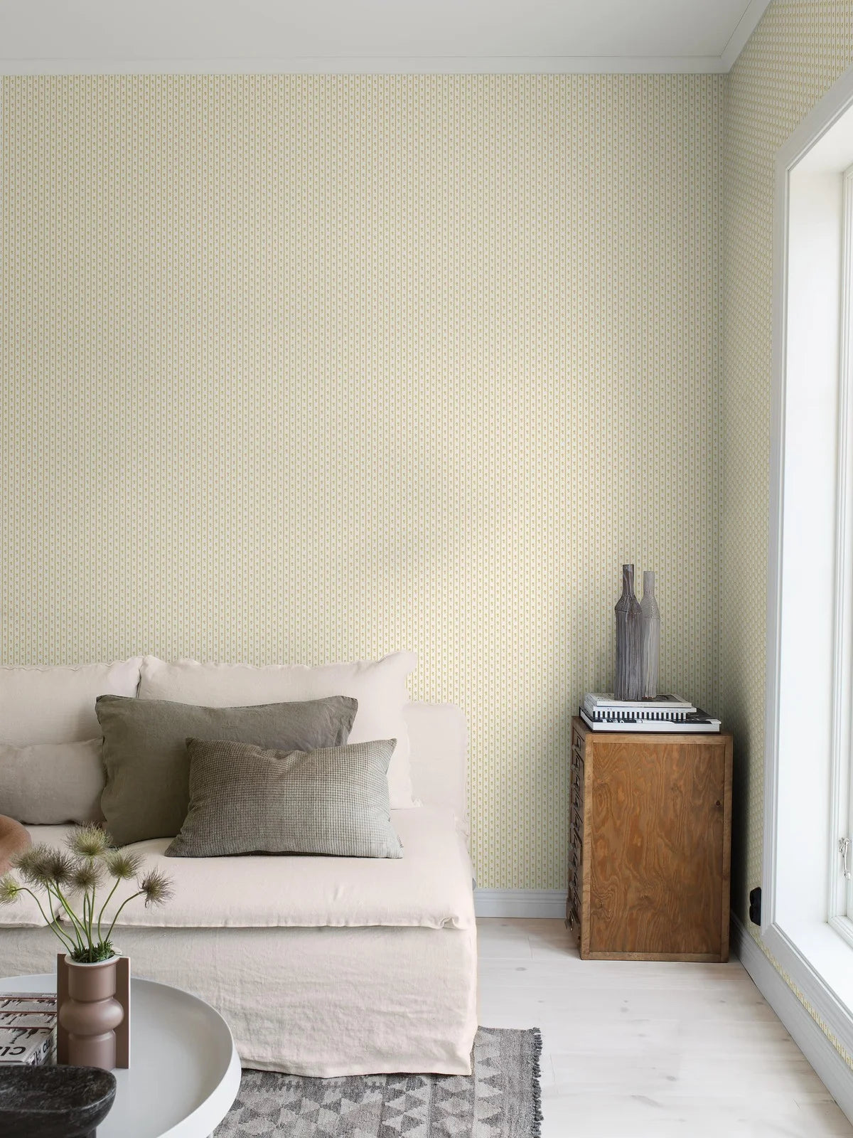 Wallpaper Lilla Lyckan is perfect for an office, where it will create a space full of delicacy and freshness. Its light pattern and color scheme introduce a subtle atmosphere to the interior while adding a lively and friendly character. Thanks to its high-quality craftsmanship, the wallpaper is washable, making it a practical choice for everyday use.