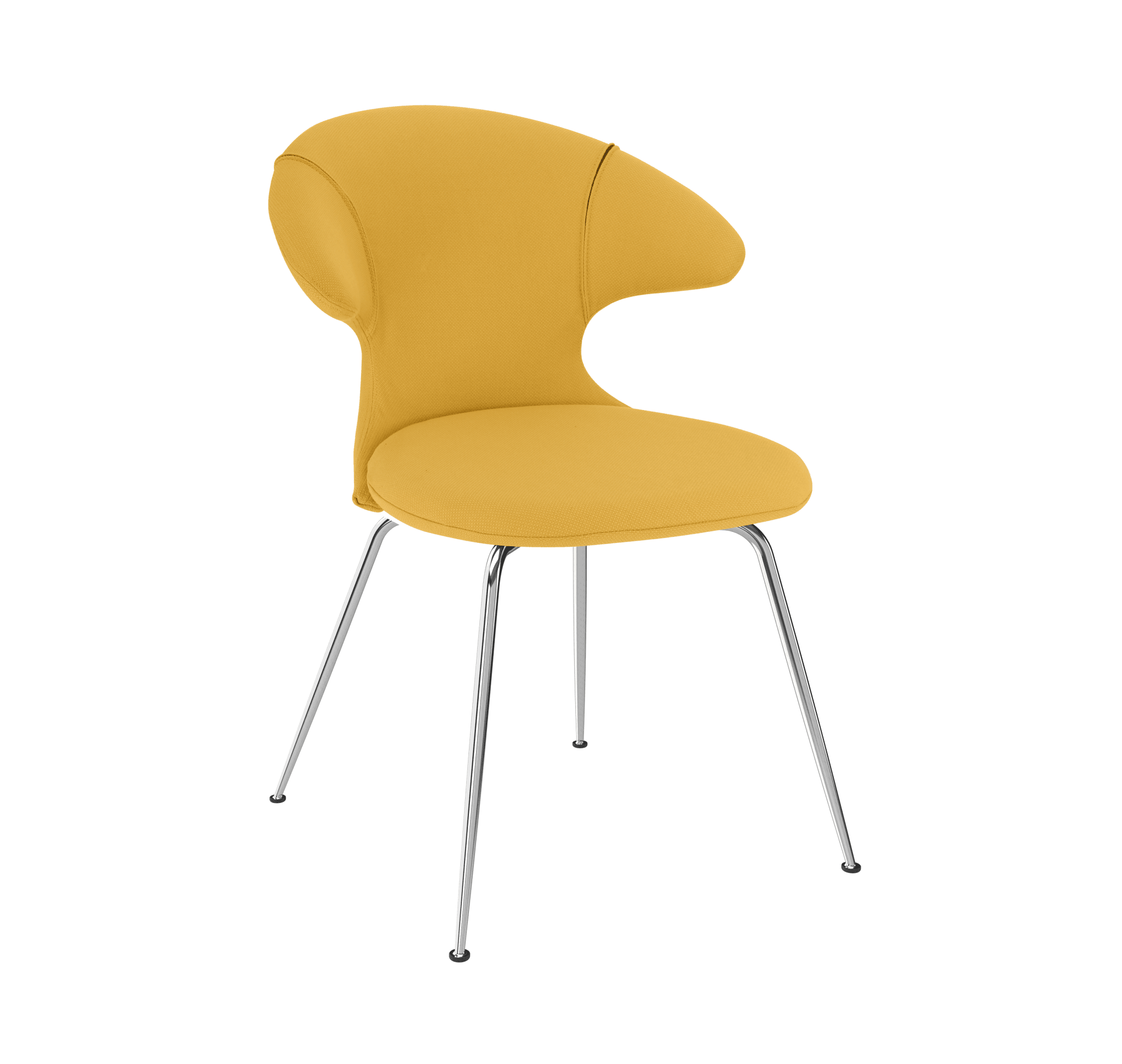 Chair is available in 17 carefully selected colors of the Horizons fabric, which is 100% recycled or in 2 fabrics from the Teddy collection. Additionally, the leg options include brass, chrome, or black finishes, allowing the chair to match various interior styles. This combination of aesthetics, functionality, and a sustainable approach to materials makes Time Flies a unique and durable offering.