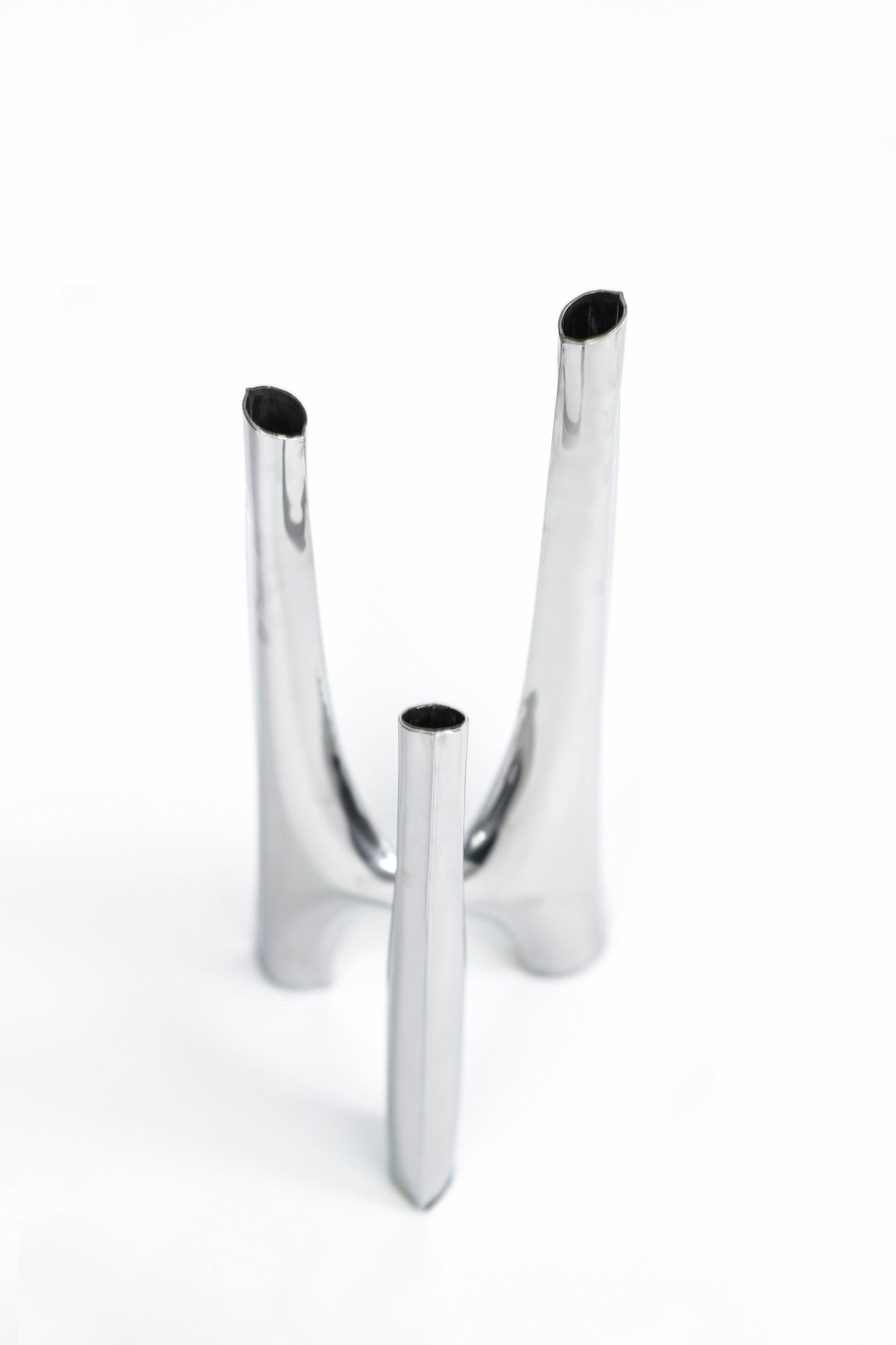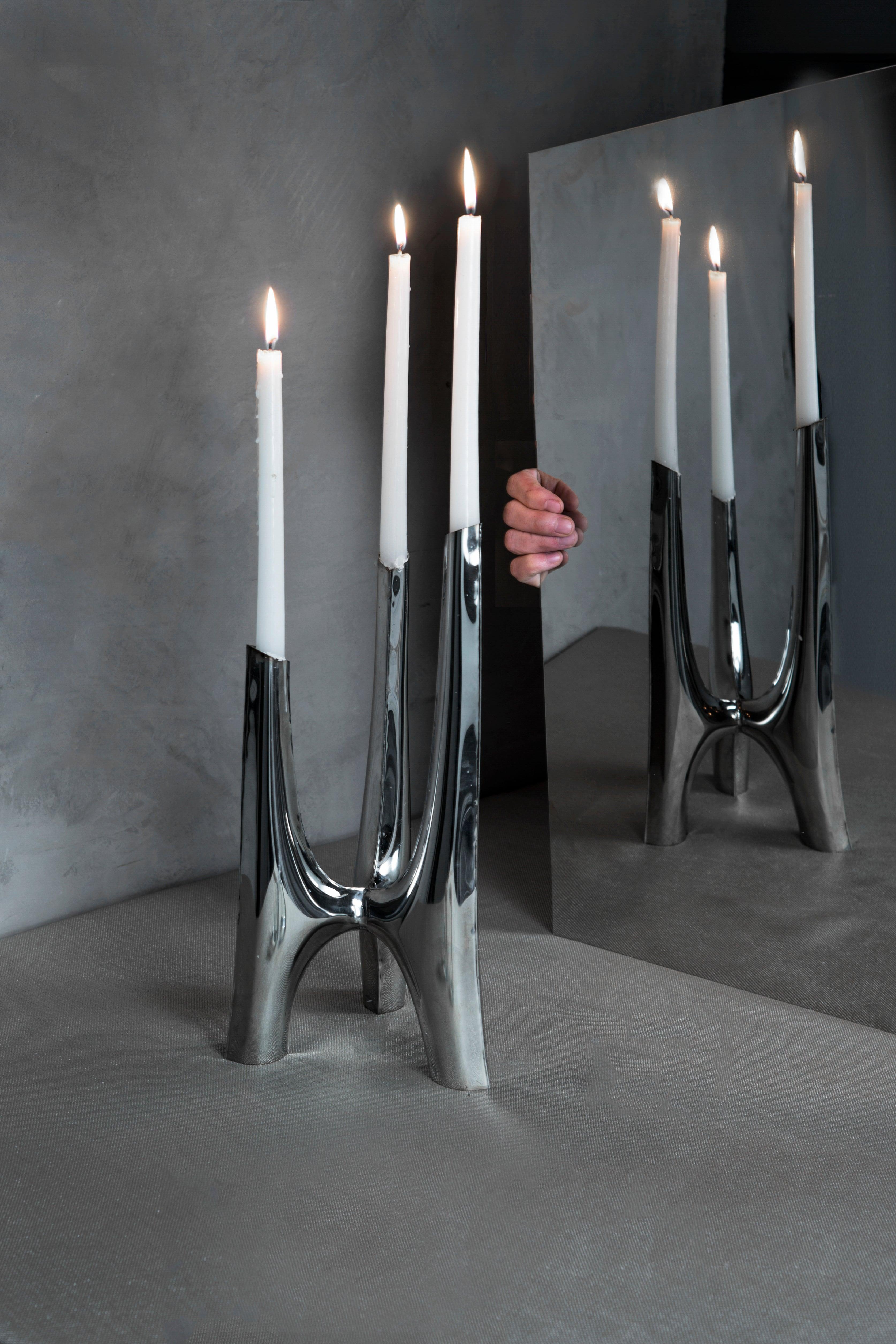 Triglav Candle Holder in inox color is a sculpture of fire and shadow, blooming in a magical dance of flames. The Harmony Candle Holder fills the room with a mystical glow, and its form reflects the harmony of the universe.