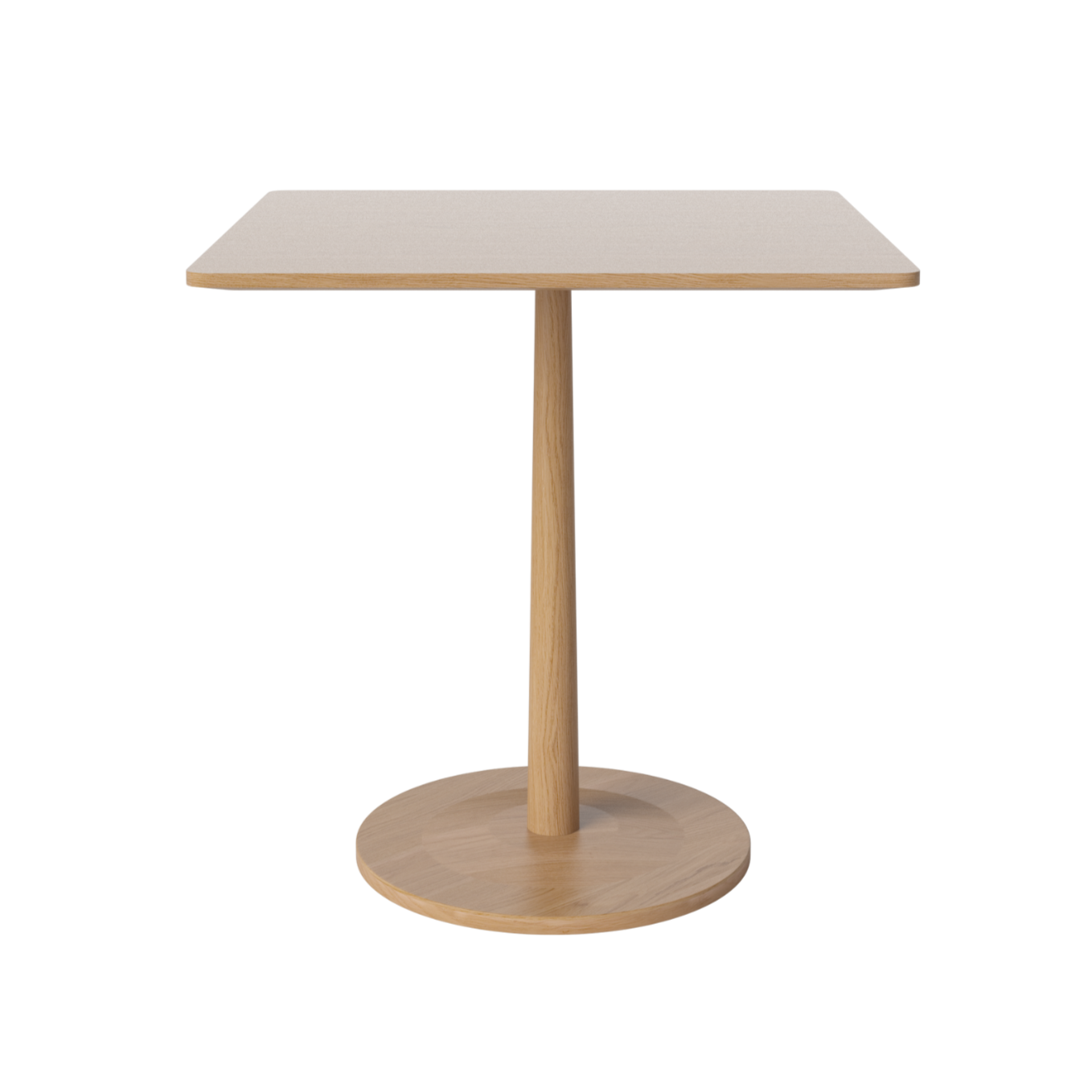 Table Turned is a harmonious combination of minimalist form and natural beauty. Made of lacquered oak, both in the tabletop and the base, it emphasizes the warm and timeless character of the wood. The tabletop is finished with a veneered surface in white, pigmented lacquer, which adds visual lightness. The stable base made of solid oak gives the table durability and elegance.