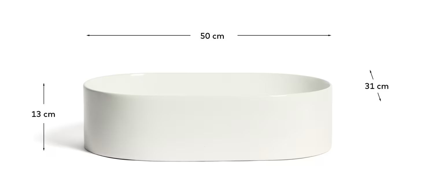 Thanks to its universal design, ceramic sink Ovara easily adapts to various interior styles – from classic to modern. It is compatible with bathroom furniture from the Kave Home collection, allowing for the creation of a harmonious set and easy installation. This is the perfect solution for those seeking a durable, aesthetic, and comfortable bathroom fixture.