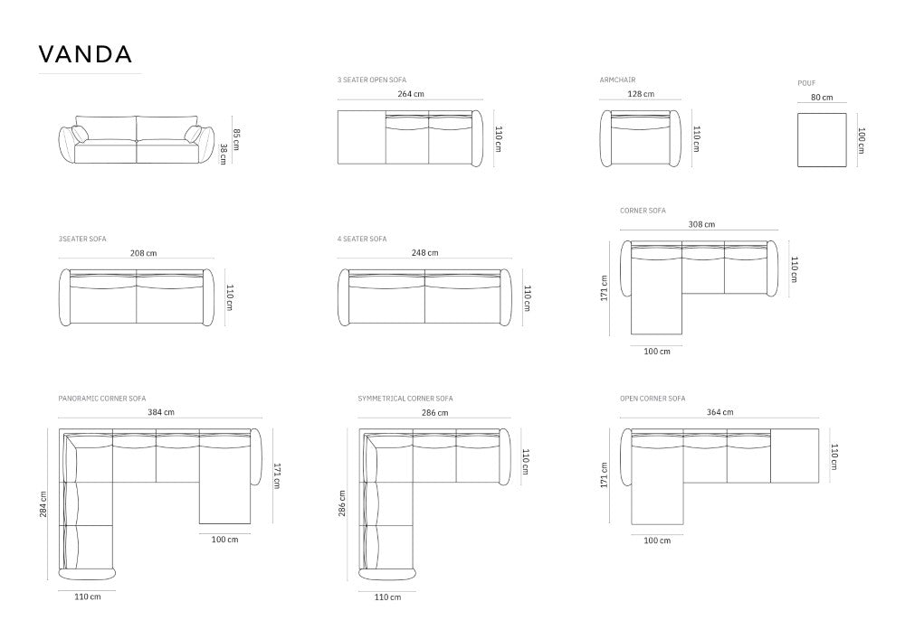 The velvet-upholstered sofa is not only striking but also durable. It provides adequate support in any sitting position. The entire structure is based on low, sturdy legs, giving the impression of floating above the ground. If you are looking for harmony in good style, the striking sofa Vanda will be the perfect addition to your home.