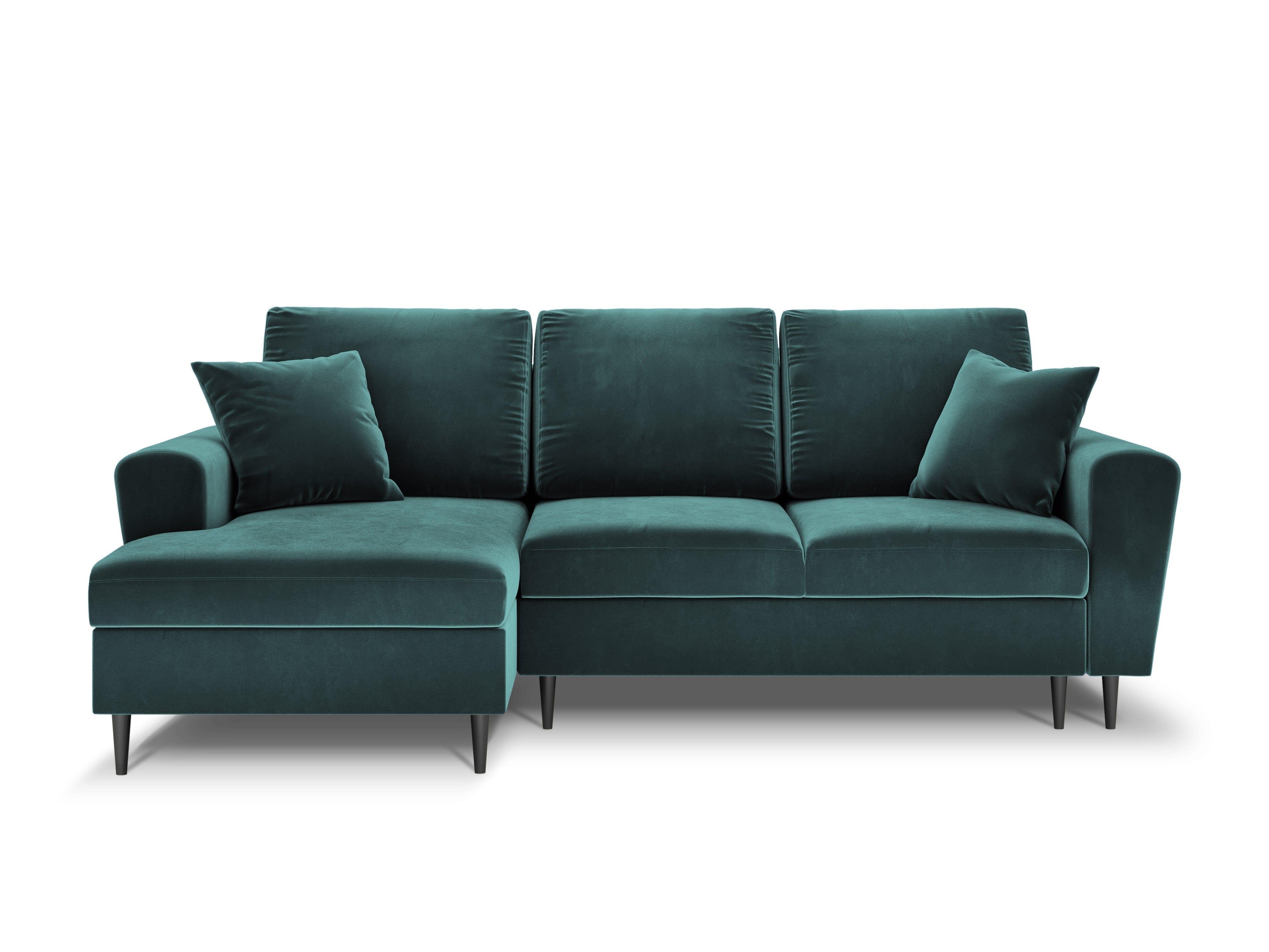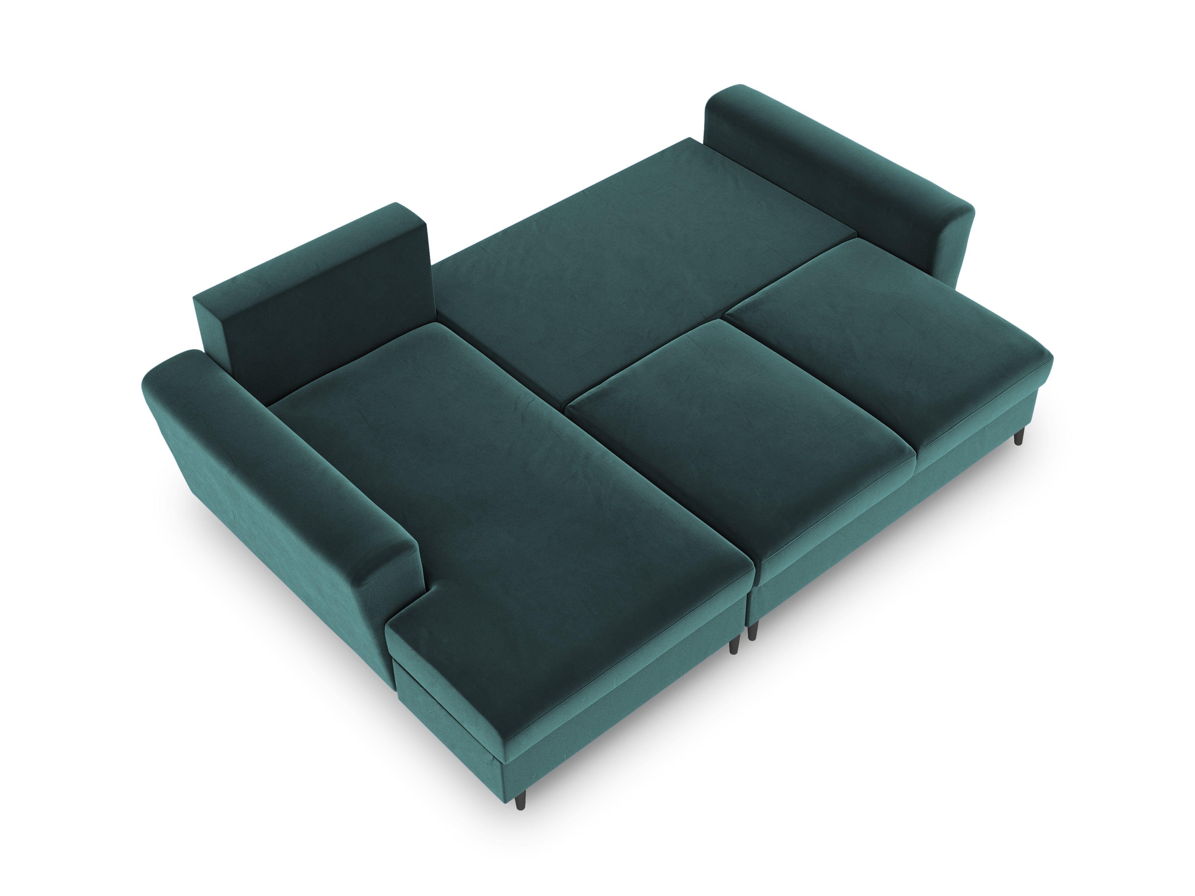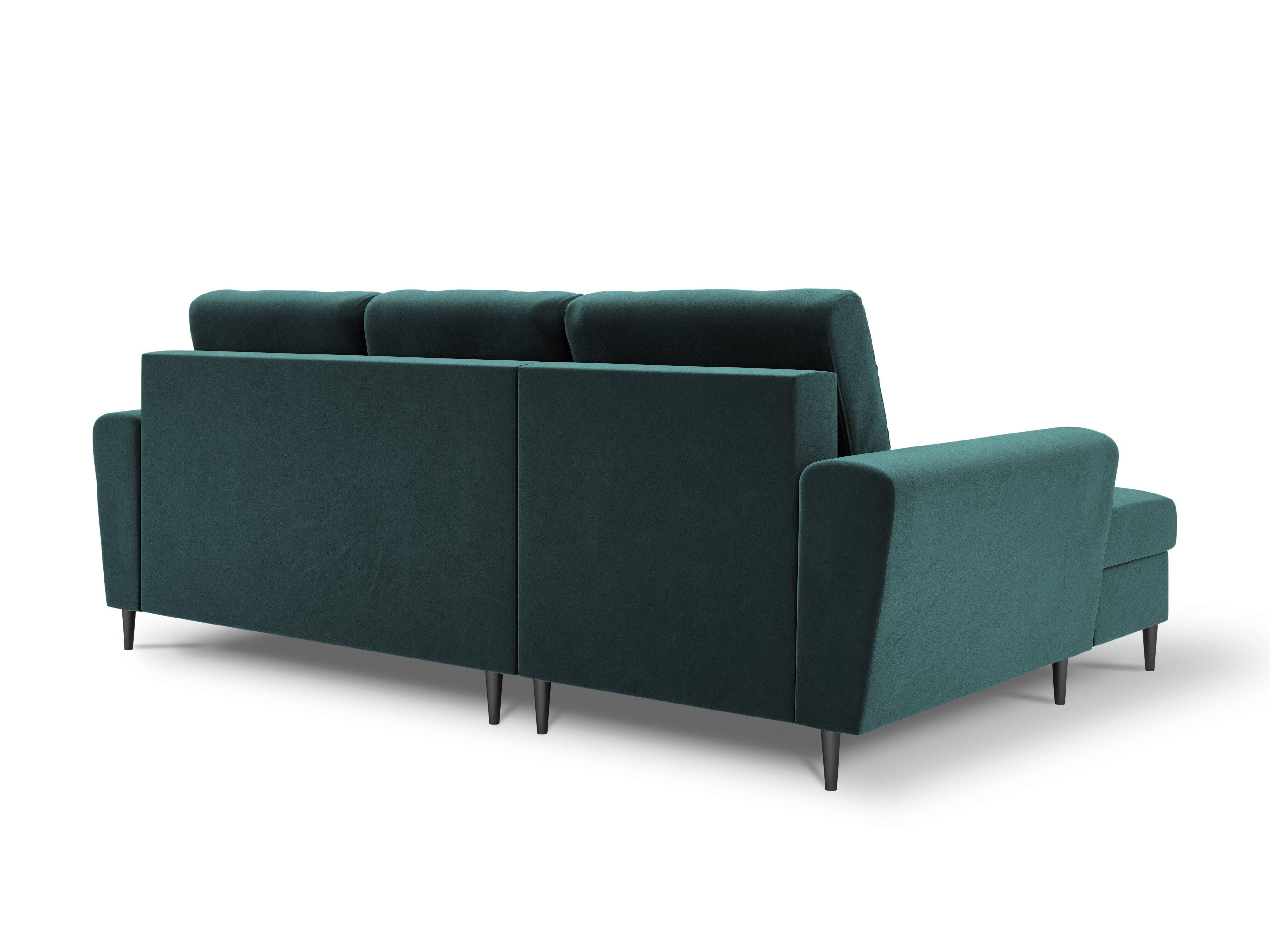 Narożnik lewostronny aksamitny z funkcją spania KYOTO petrol z czarną podstawą Cosmopolitan Design    Eye on Design