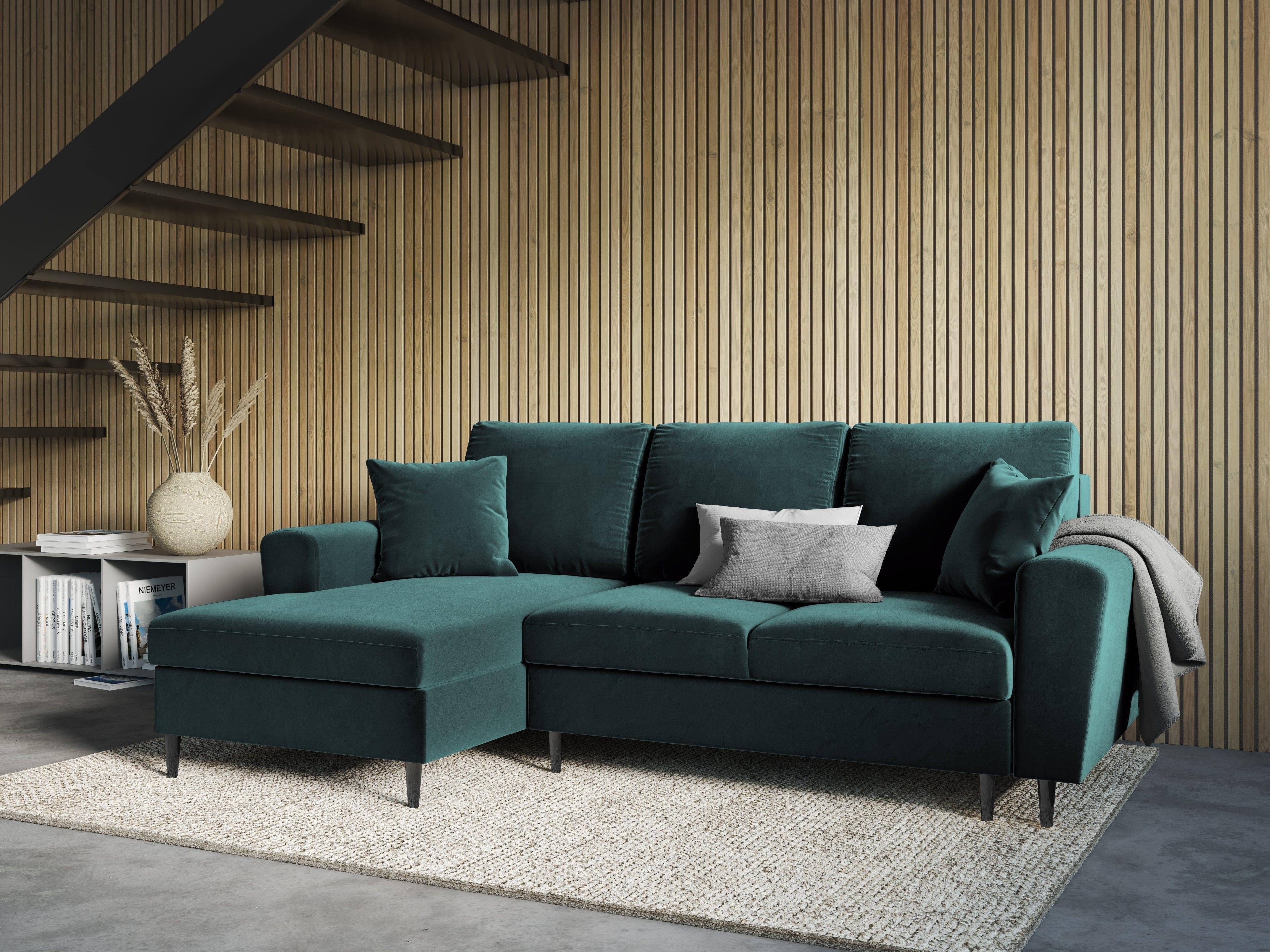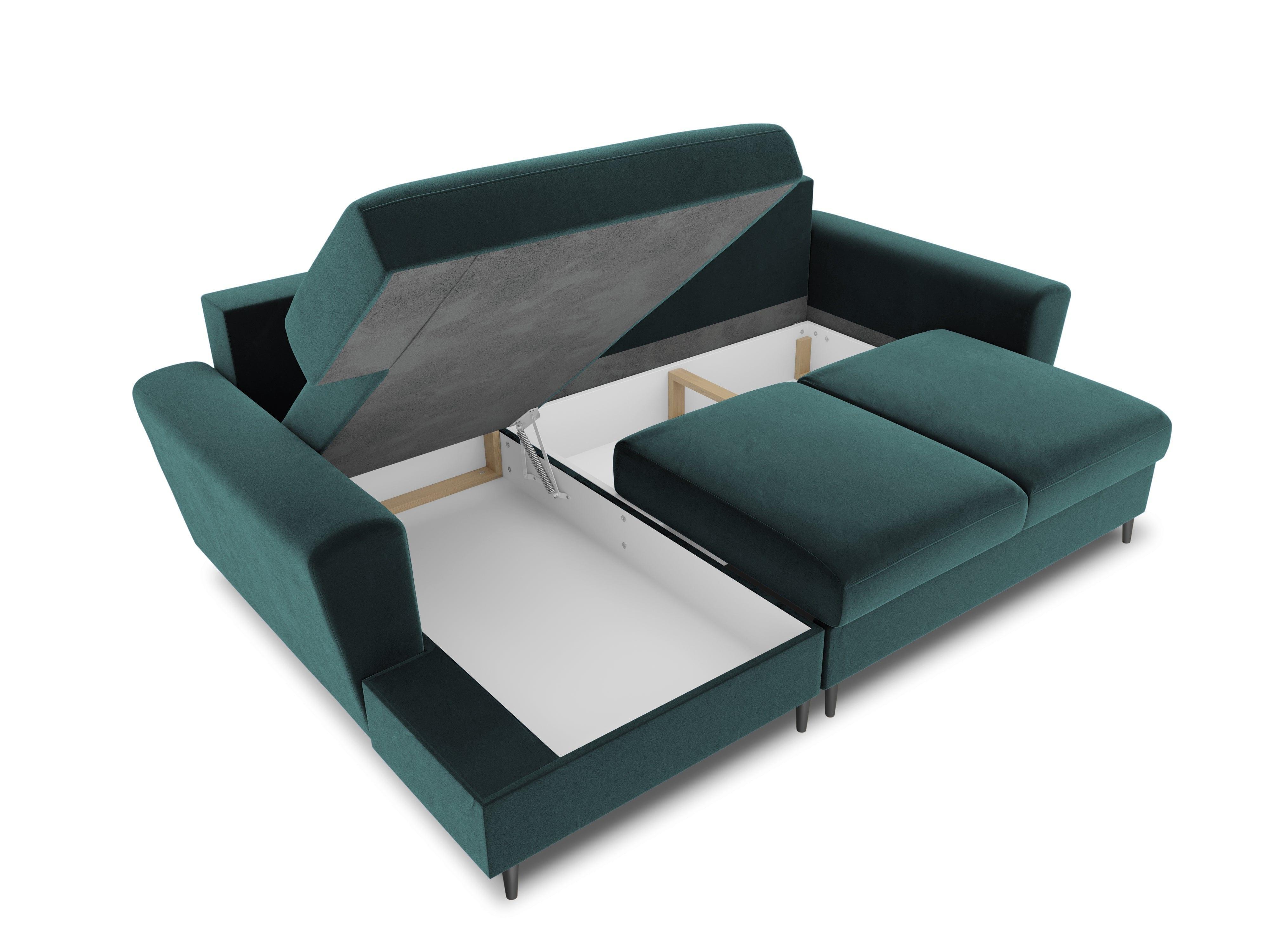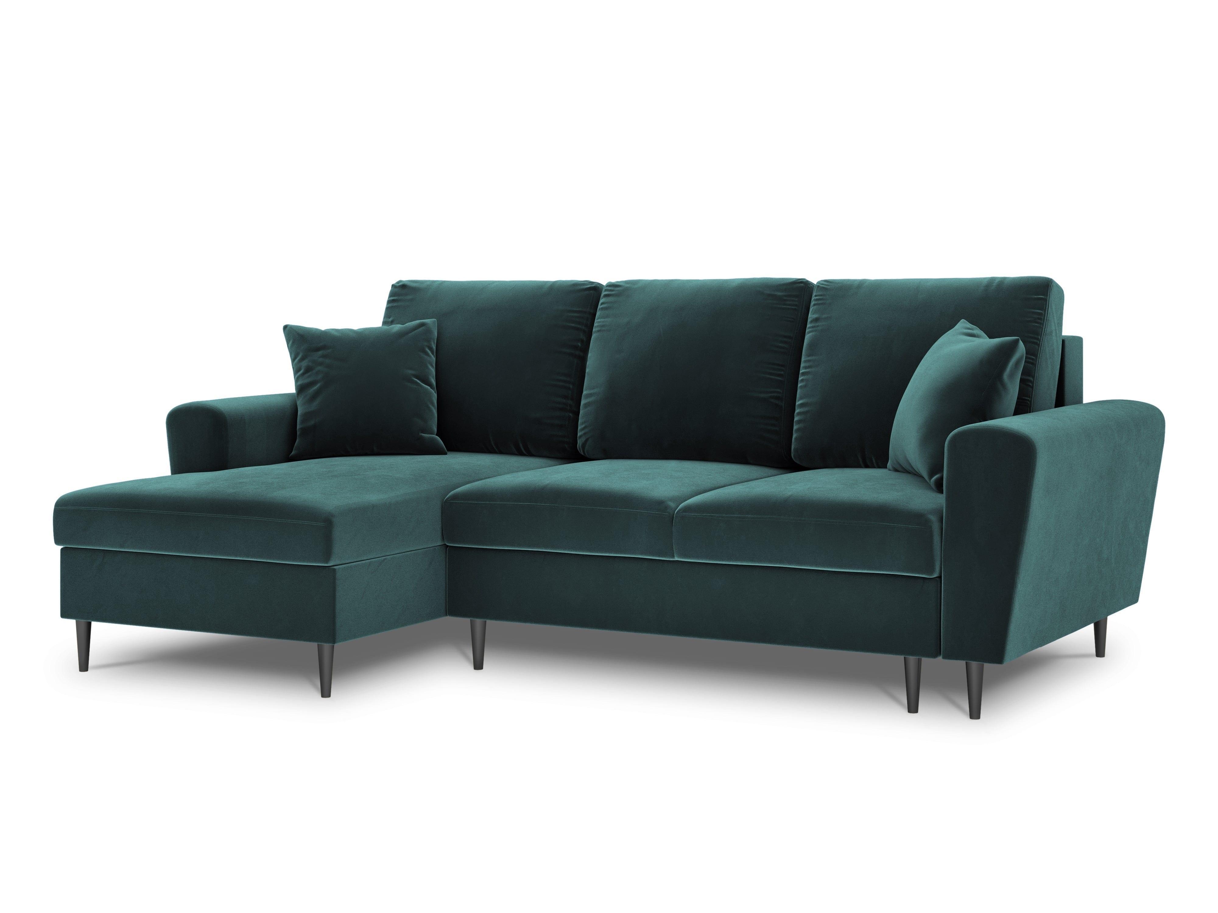 Narożnik lewostronny aksamitny z funkcją spania KYOTO petrol z czarną podstawą Cosmopolitan Design    Eye on Design