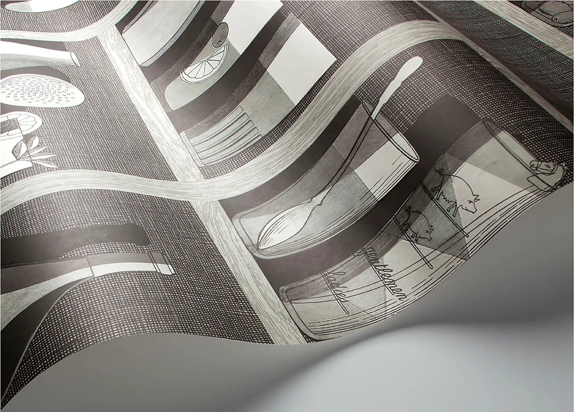Wallpaper Fornasetti Senza Tempo - Gray Cocktails