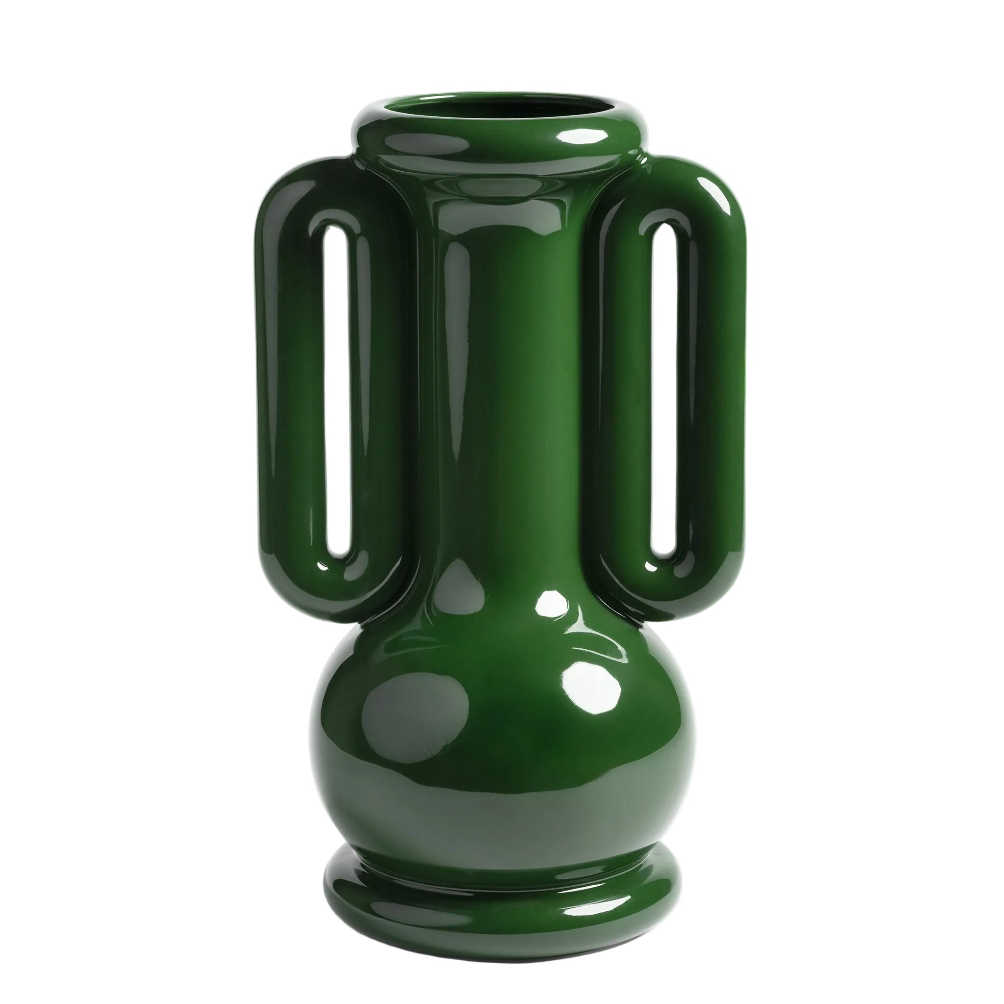 This classic vase Amfora, inspired by traditional Greek amphorae, captivates with its elegant silhouette and timeless character. Two decorative handles give the vase a distinctive shape that beautifully complements both modern and classic interiors. The deep pink color combined with a glossy glaze makes it a stylish accent that draws the eye and enhances the character of the arrangement.