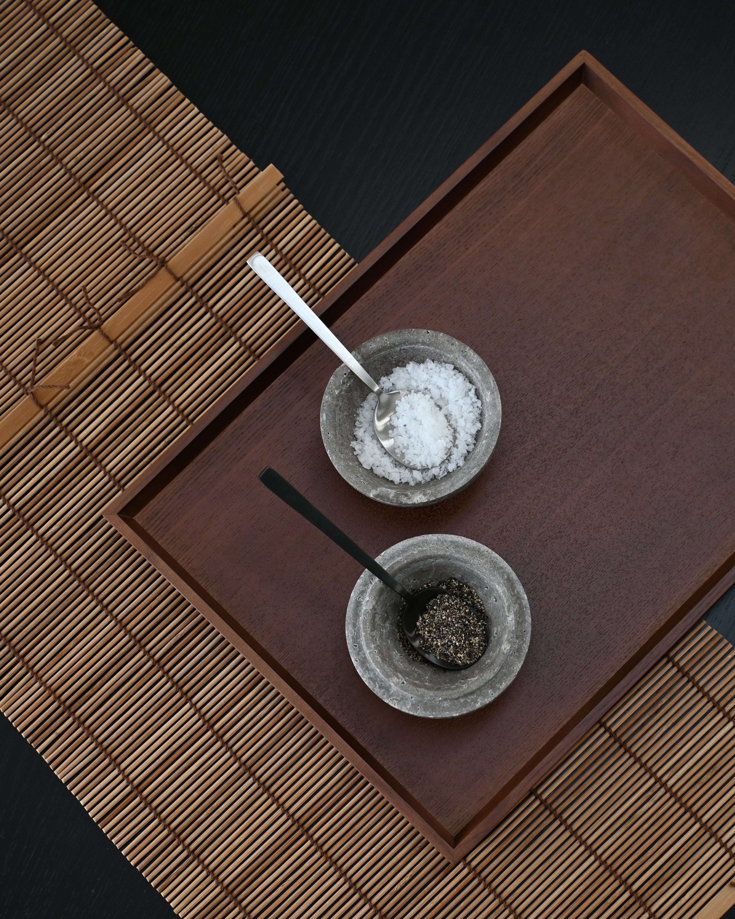 Cutlery Set Kogei in a black finish is a blend of modern elegance and artisanal precision, inspired by the Japanese philosophy of Kogei, which celebrates uniqueness and artistic craftsmanship. The subtle black coating gives the cutlery a contemporary, refined appearance that perfectly complements modern table settings, adding elegance and a touch of character to every meal.