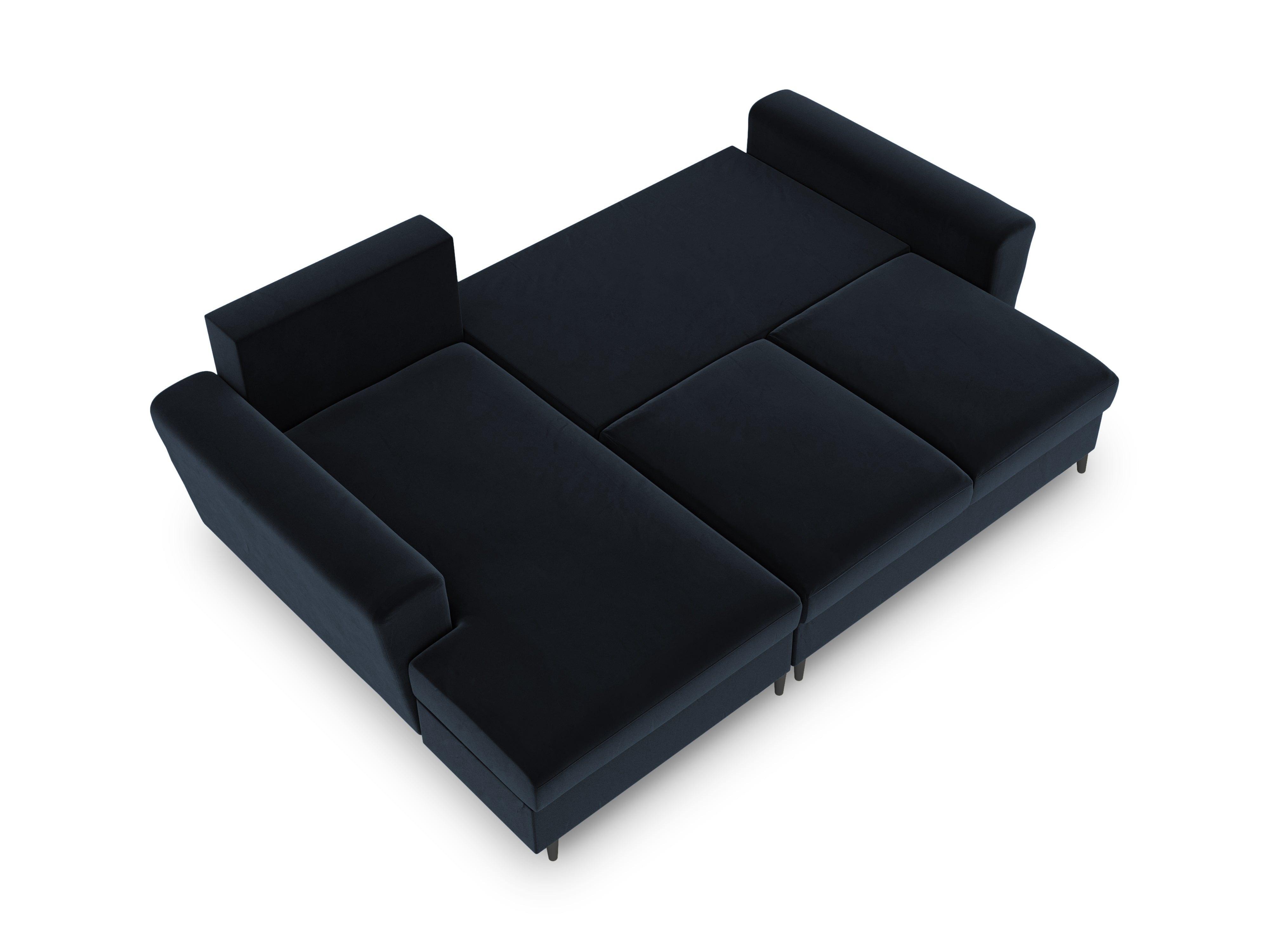 Narożnik lewostronny aksamitny z funkcją spania KYOTO ciemnoniebieski z czarną podstawą