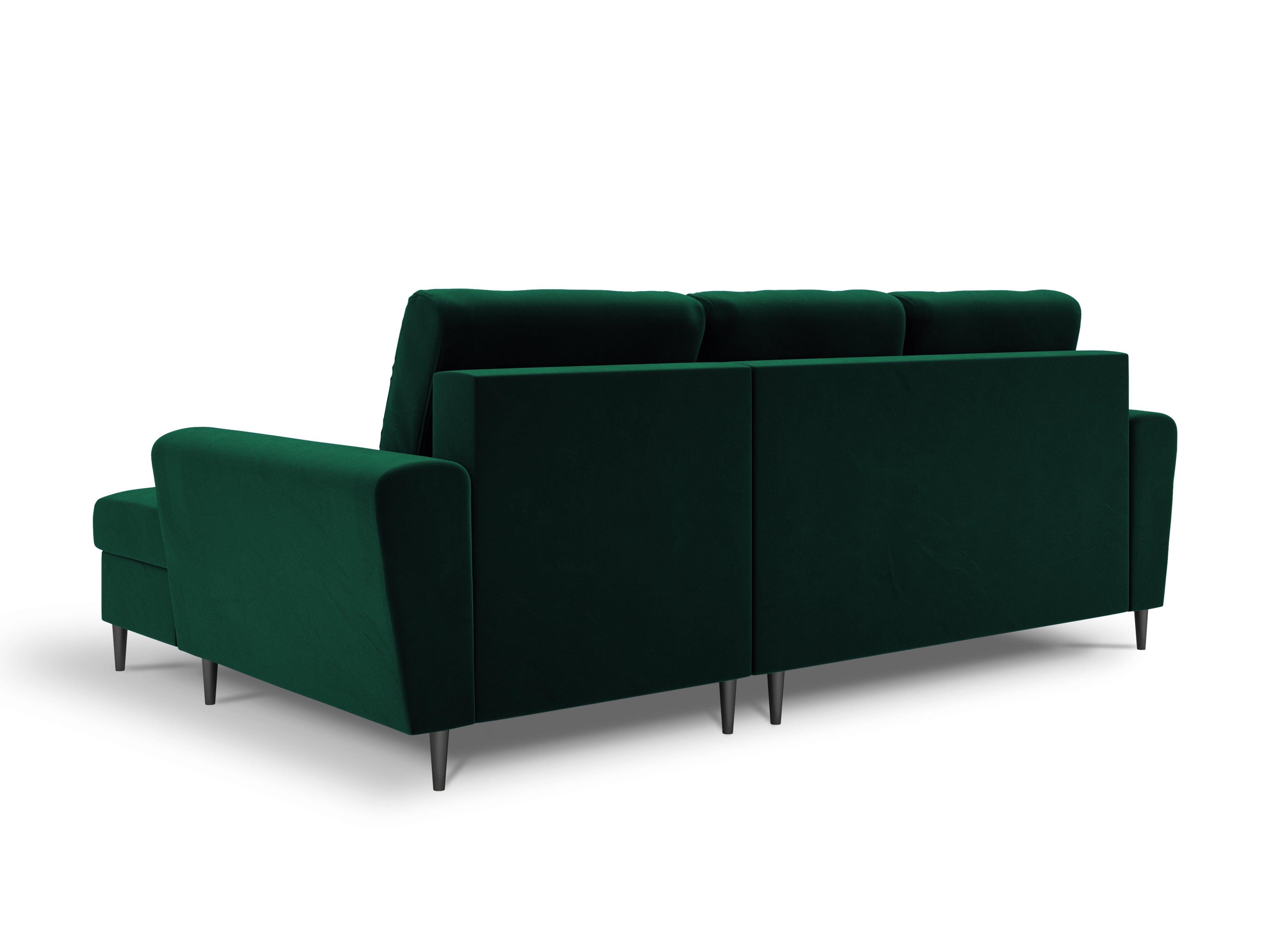 Narożnik prawostronny aksamitny z funkcją spania KYOTO butelkowa zieleń z czarną podstawą Cosmopolitan Design    Eye on Design