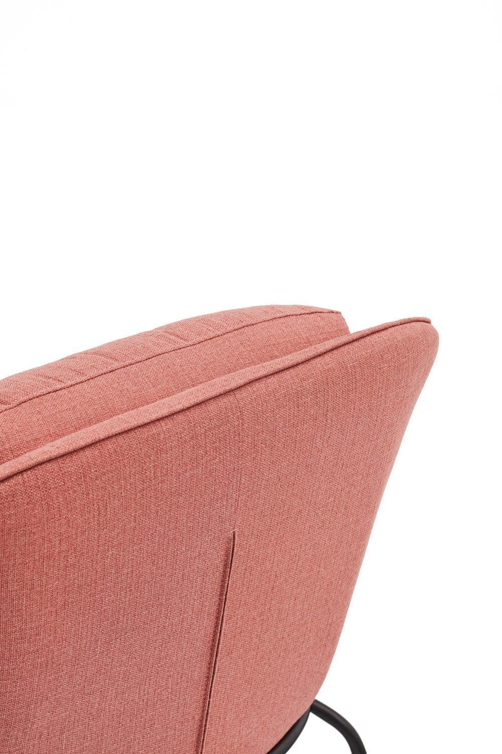 De combinatie van het zwarte frame met de koraalrode stof, die als bekleding voor de designfauteuil dient, vormt een perfecte eenheid. Dankzij de extra zachte elementen biedt de rugleuning uitstekende ondersteuning voor de wervelkolom en zorgt het voor een aangename zitervaring.