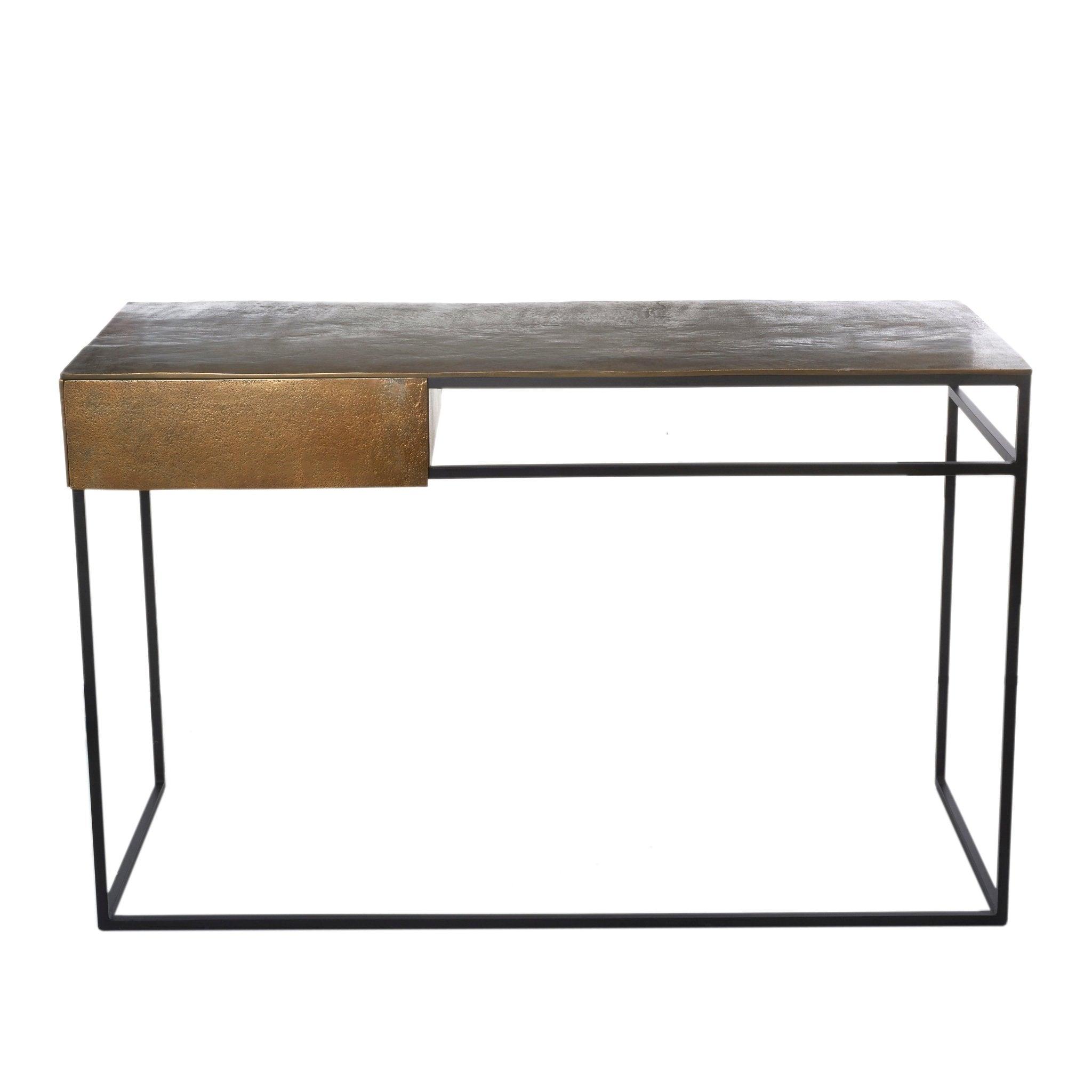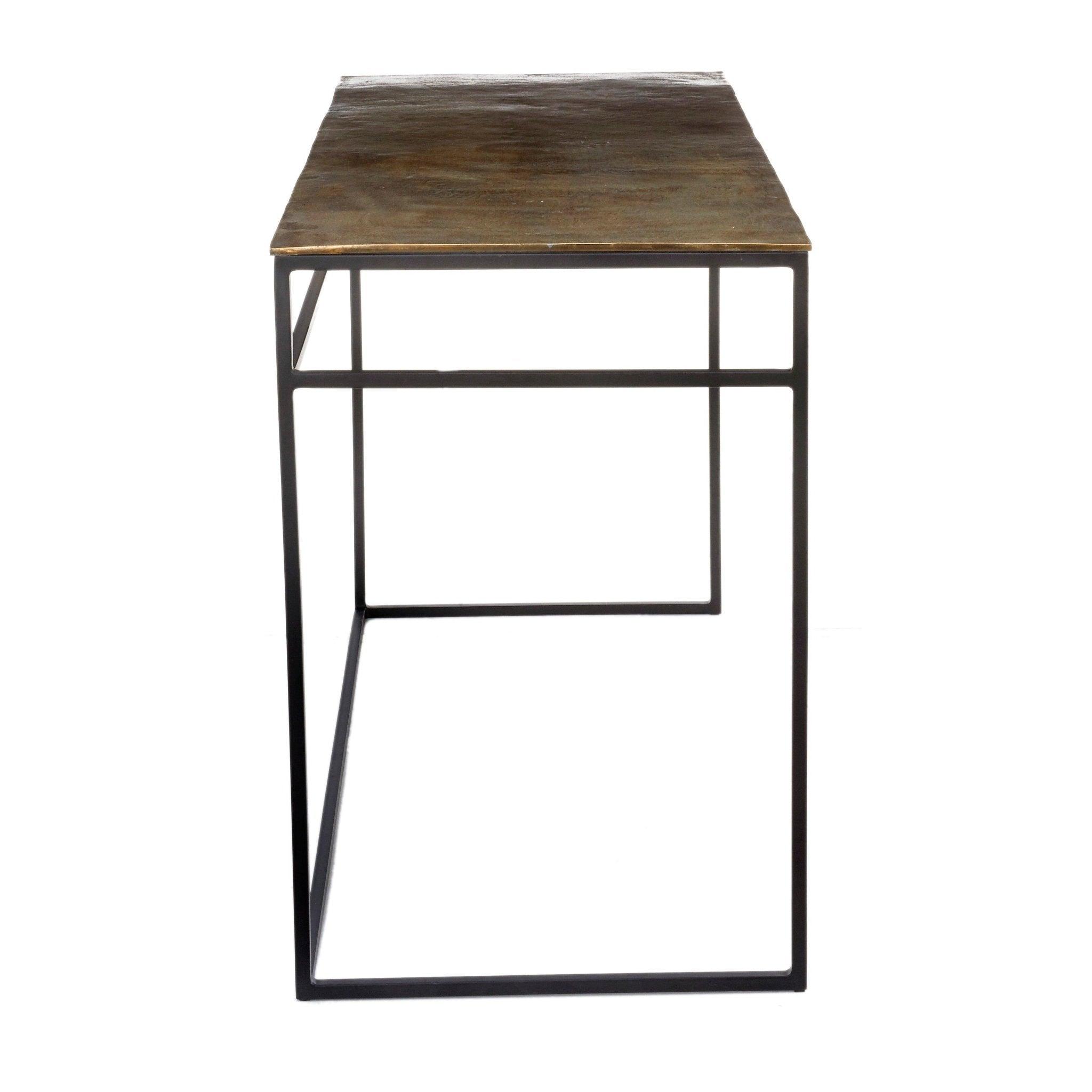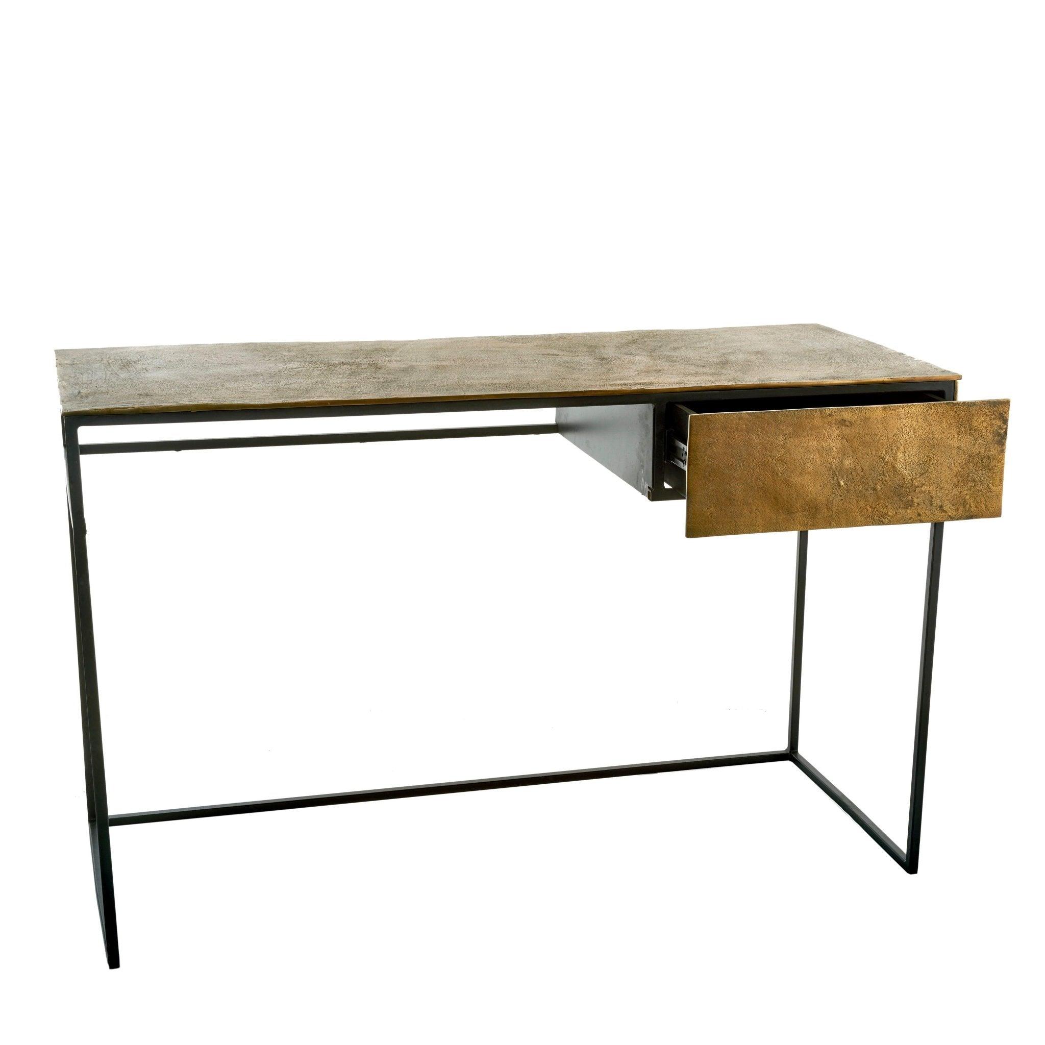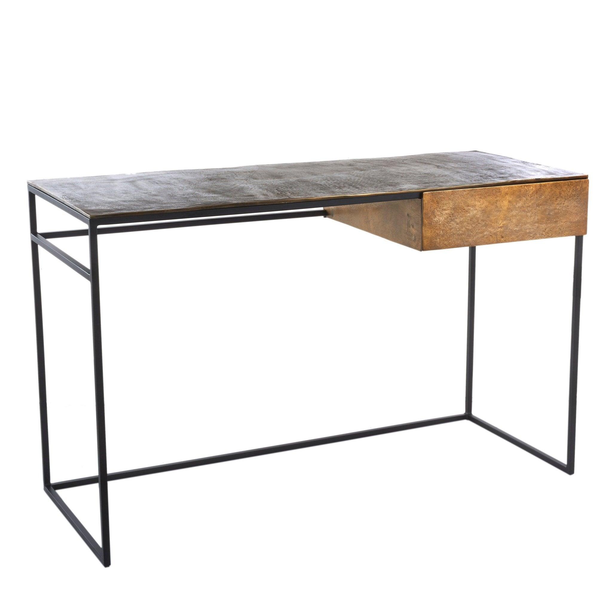 Antiek Bureau in een messing kleur brengt een unieke karakter in uw interieur. De eenvoudige vorm en minimalistische afwerking maken dit model niet alleen een functioneel onderdeel van uw woning, maar ook een praktische decoratie. De inspiratie voor dit model komt van klassieke antiek. Het Antiek Bureau is vervaardigd uit massief aluminium met een blad bedekt met antiek messing en een zwarte, poedergecoate frame. Dit model past perfect in een thuiskantoor of een aparte kantoorhoek.