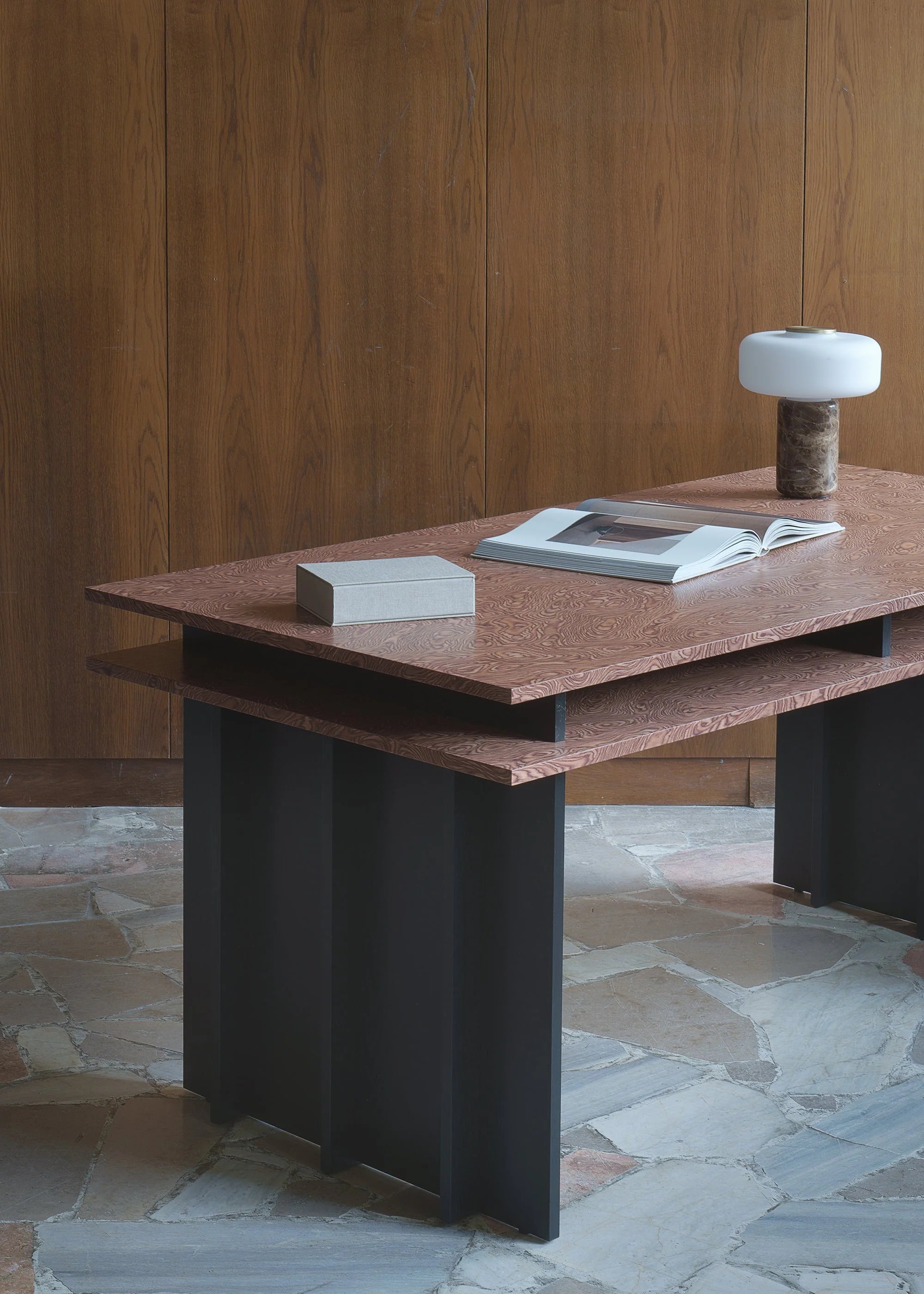 Beschikbaar in twee verfijnde afwerkingen: natuurlijk eikenfineer of een diepe, expressieve Muscato-kleur. Subtiele details, strakke lijnen en doordachte verhoudingen maken het de ideale keuze voor wie op zoek is naar tijdloos design en gebruikscomfort.