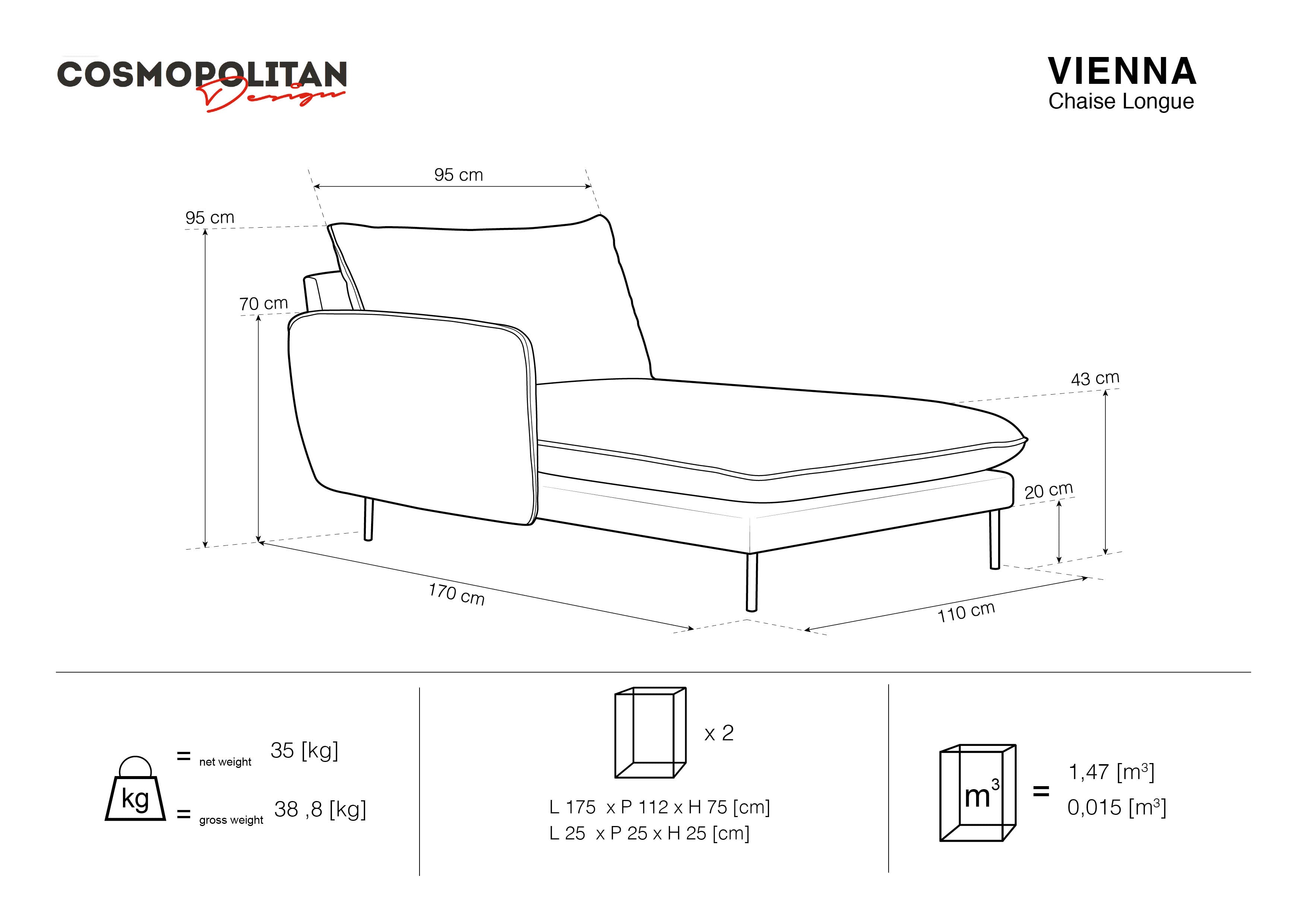 Designerski szezlong Vienna wyróżniają piękne proporcje i harmonijne kształty. Szezlong jest nie tylko wygodny, ale też wprowadzi do wnętrza nutę paryskiego szyku i elegancji. Subtelny kształt i miękkie siedzisko zapewnią niezwykły komfort użytkowania. Metalowe nogi nadają całej formie lekkości.