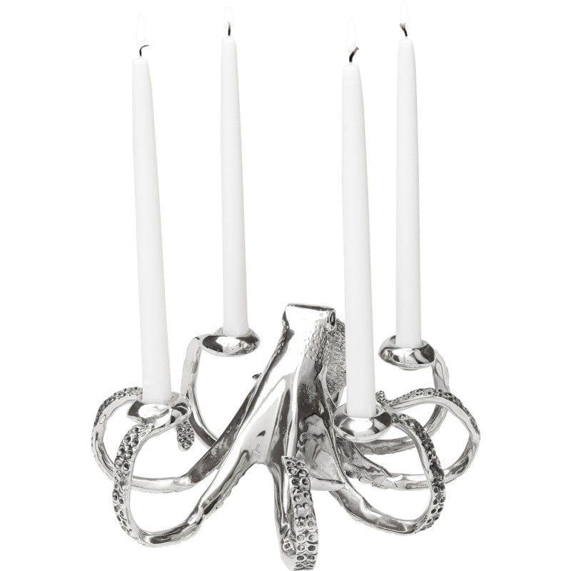 Glanzende, zilverachtige octopus, die met gratie vier kaarsen kan vasthouden, zal een bijzondere accent op de tafel zijn tijdens verjaardagen, feestdagen of een romantisch diner. Dit diepzeedier is een interessante toevoeging die een gezellige sfeer creëert en een unieke karakter aan uw interieur toevoegt.
