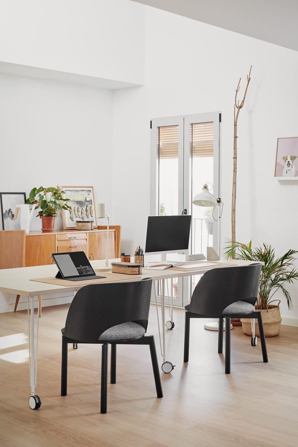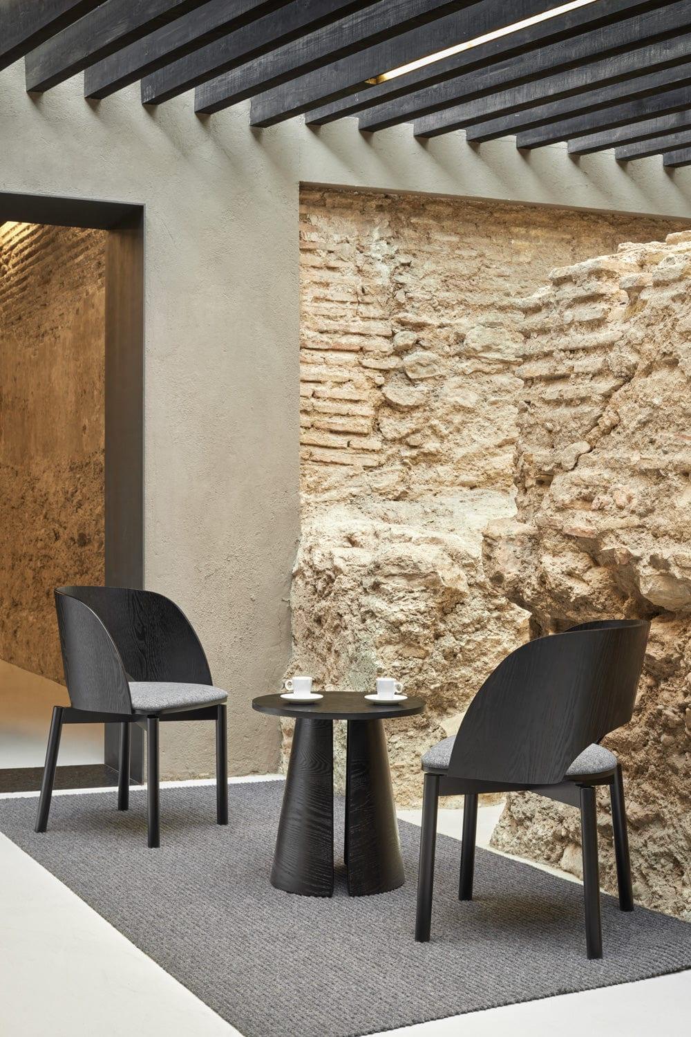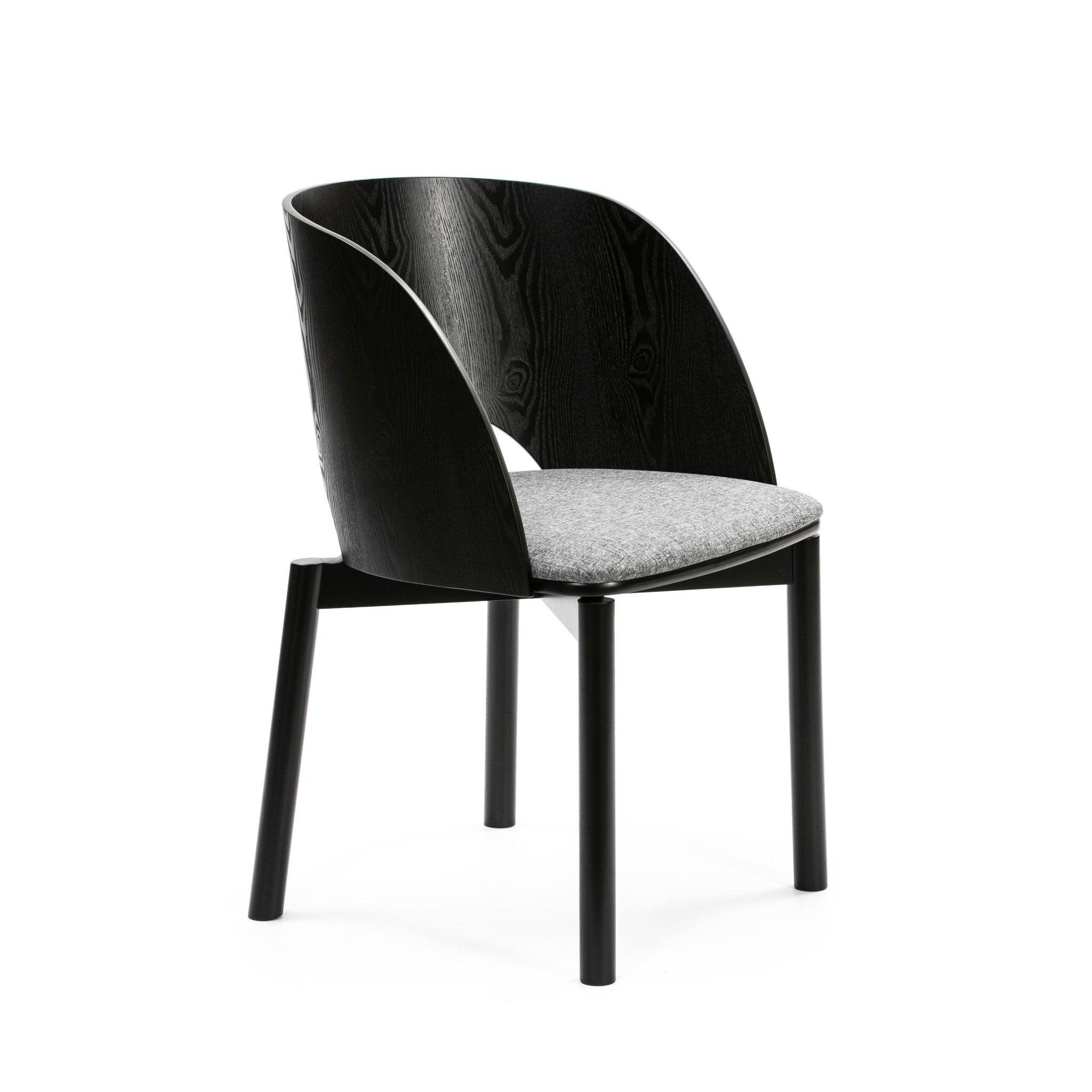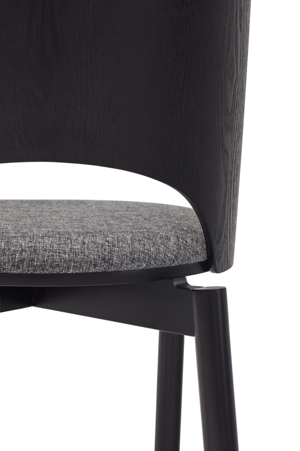 De combinatie van de natuurlijke houtstructuur met de lichtgrijze stof die is gebruikt voor de bekleding van de zitting, zorgt voor een ideale match. Dus als u droomt van een designstoel gemaakt van hoogwaardige materialen, kies dan voor Dam.