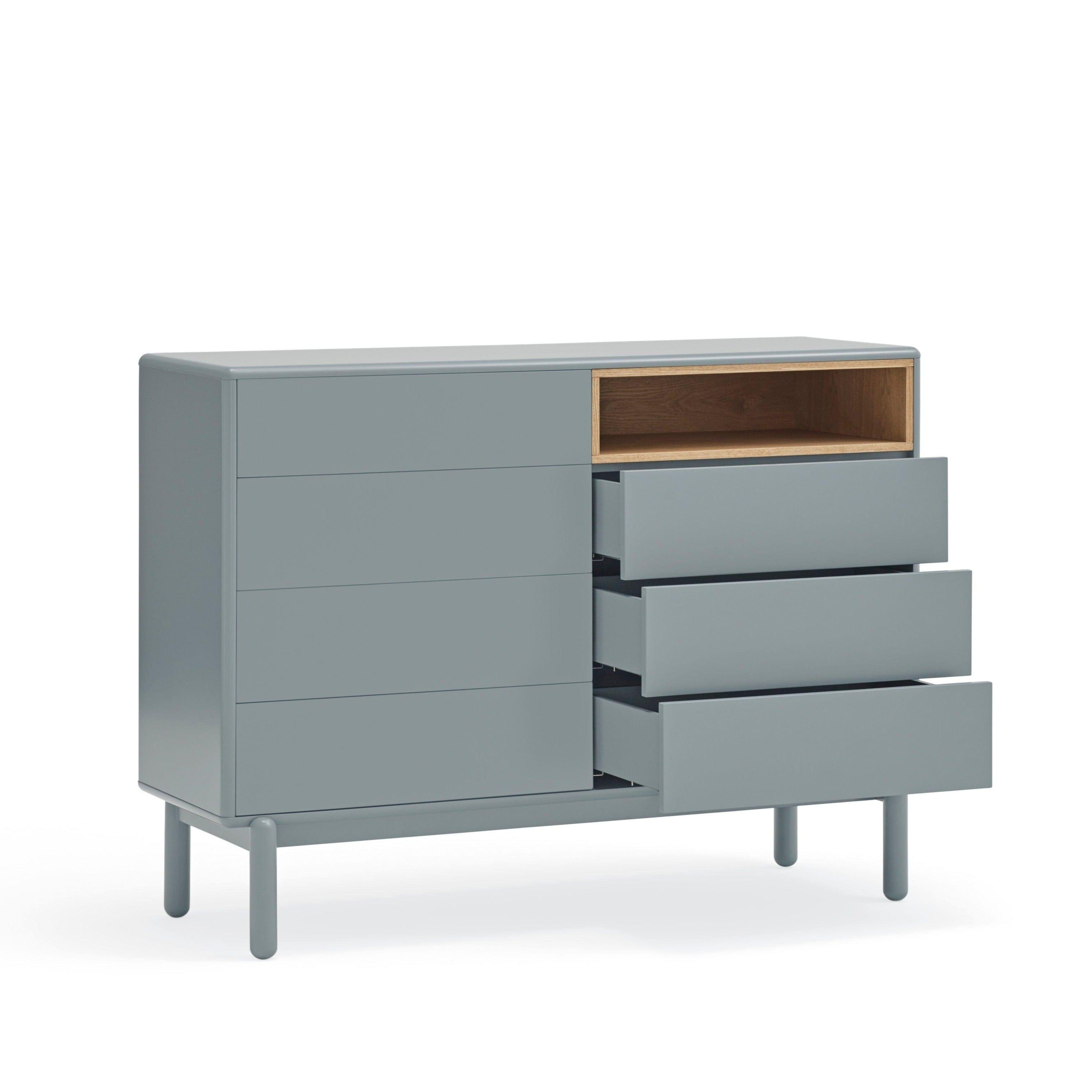 Funkcjonalna szafka Corvo spełni oczekiwania nawet najbardziej wymagających. Dzięki połączeniu naturalnej struktury drewna z eleganckim, szarym kolorem szafka do salonu Corvo prezentuje się jak z okładki magazynu wnętrzarskiego. Wygodne szuflady sprawią, że każda przestrzeń stanie się lepiej zorganizowana.