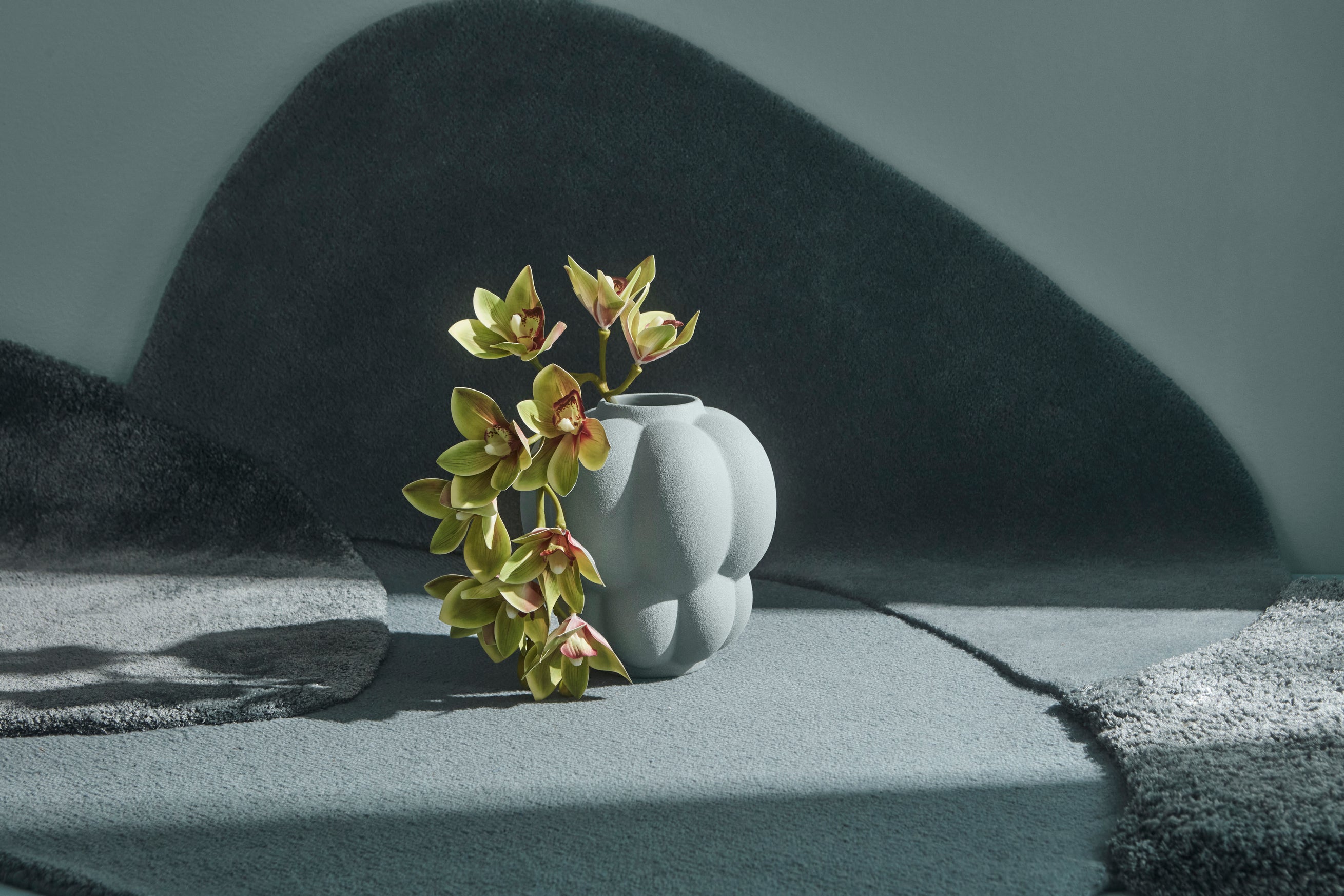 De naam Mola is afgeleid van het Latijnse woord voor steen – en dit motief vormt de inspiratie voor het ontwerp van het tapijt. De oppervlakte doet denken aan een patroon van harmonieus geplaatste stenen, die belangrijke momenten in ons leven symboliseren – mijlpalen waaruit we ervaring putten en die onze weg vormen.