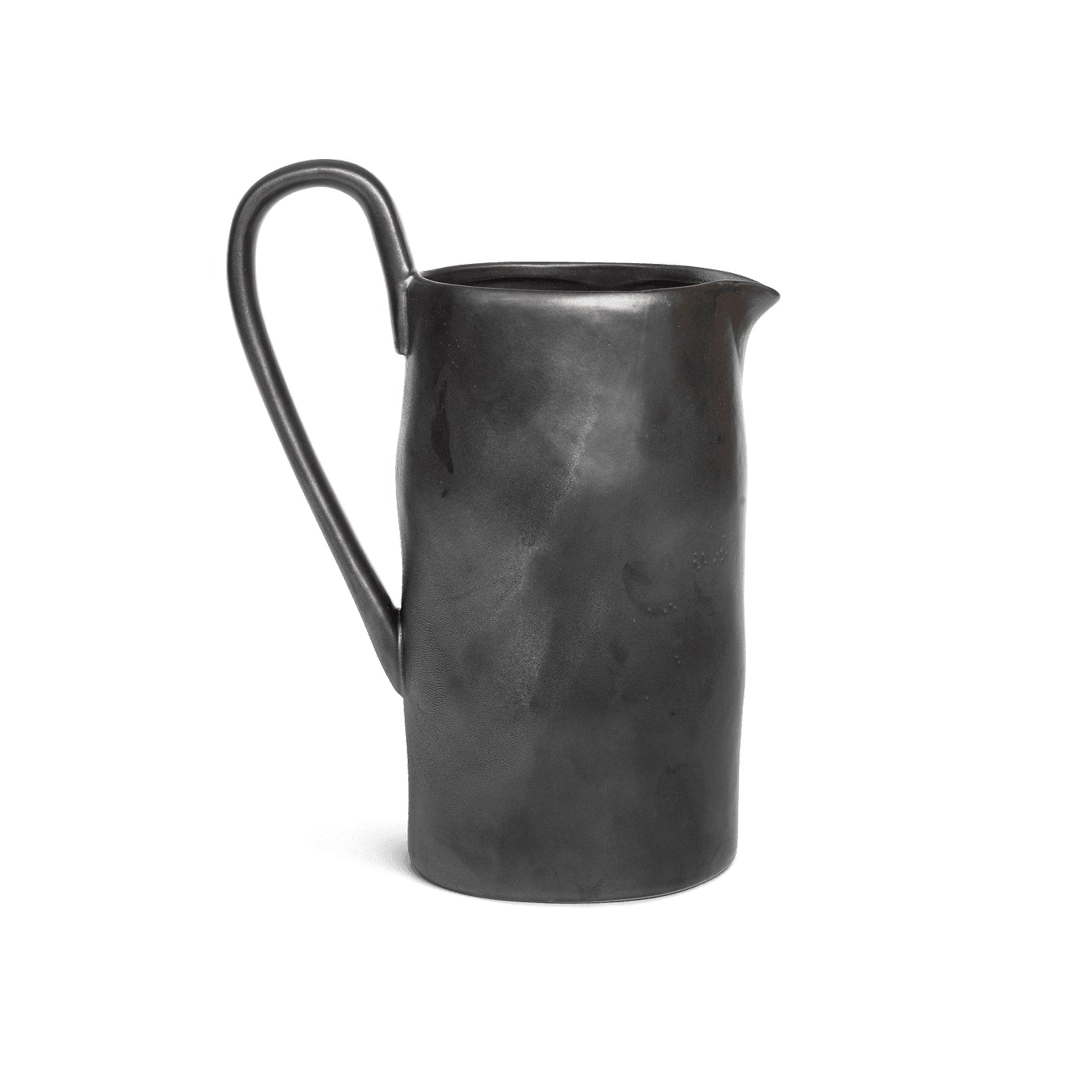 De kan Flow is een elegant element van de Flow-collectie, die modern minimalisme verbindt met traditioneel vakmanschap. Gemaakt van steengoed en bedekt met een reactieve glazuur in een subtiele zwarte tint, verrast het met een unieke uitstraling en delicate onregelmatigheden die het een authentiek, handgemaakt karakter geven. Zijn eenvoudige vorm wordt doorbroken door een verlengde, sculpturale handgreep die de aandacht trekt en het vaatwerk een bijzondere elegantie verleent.