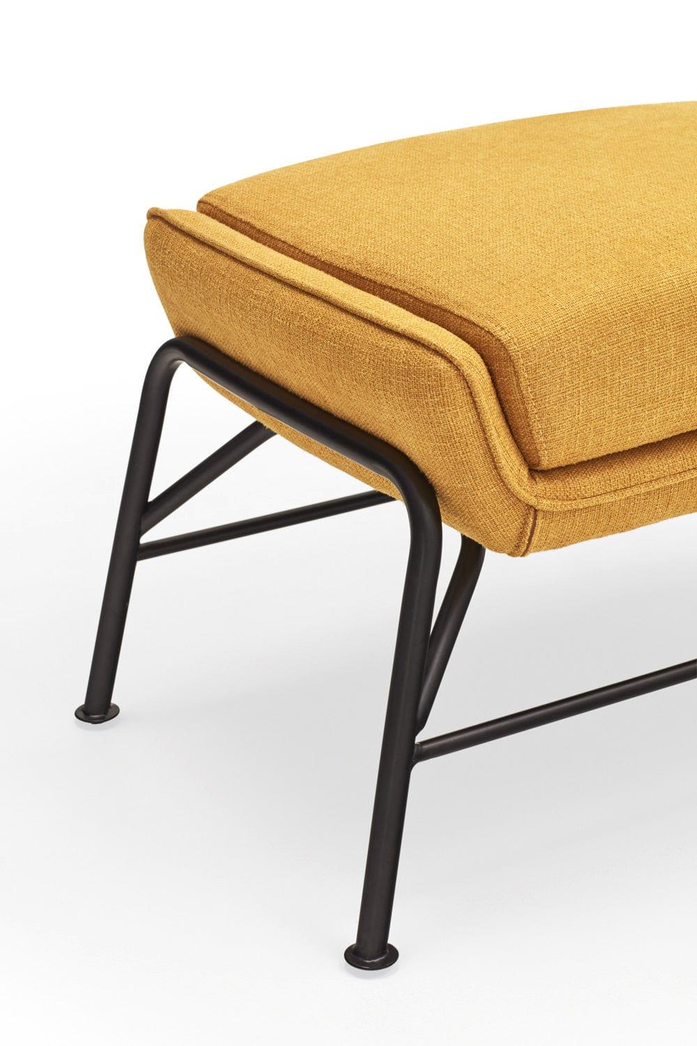 Stabilna konstrukcja połączona z musztardowym kolorem idealnie wpasuje się zarówno do wnętrz urządzonych w stylu skandynawskim, jak i nowoczesnym. Czarne, metalowe nogi są nie tylko stabilne, ale również wytrzymałe, dzięki czemu musztardowy podnóżek Sadira jest w stanie wytrzymać niemal każde obciążenie.