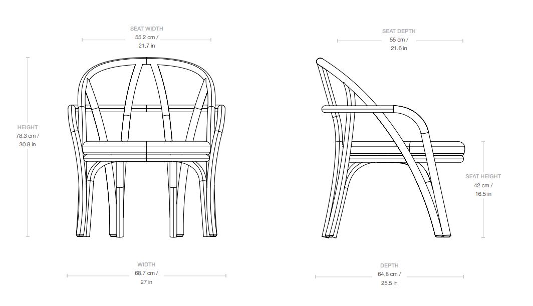 Fauteuil Bistra is een sculpturale interpretatie van de klassieke bistrostoel, ontworpen voor GUBI door studio AMDL Circle. Het ontwerp richt zich op de essentie van de vorm, waarbij elegantie en tijdloosheid worden gehaald uit de basisconstructie-elementen. De belangrijkste rol wordt gespeeld door gebogen riet, dat het meubel een lichte, natuurlijke uitstraling geeft en een duidelijke verwijzing naar traditioneel vakmanschap biedt. Fauteuil kenmerkt zich door een organische lijn geïnspireerd op natuurlijke groei, zichtbaar in de zachte, houten vormen van de poten, armleuningen en rugleuning.