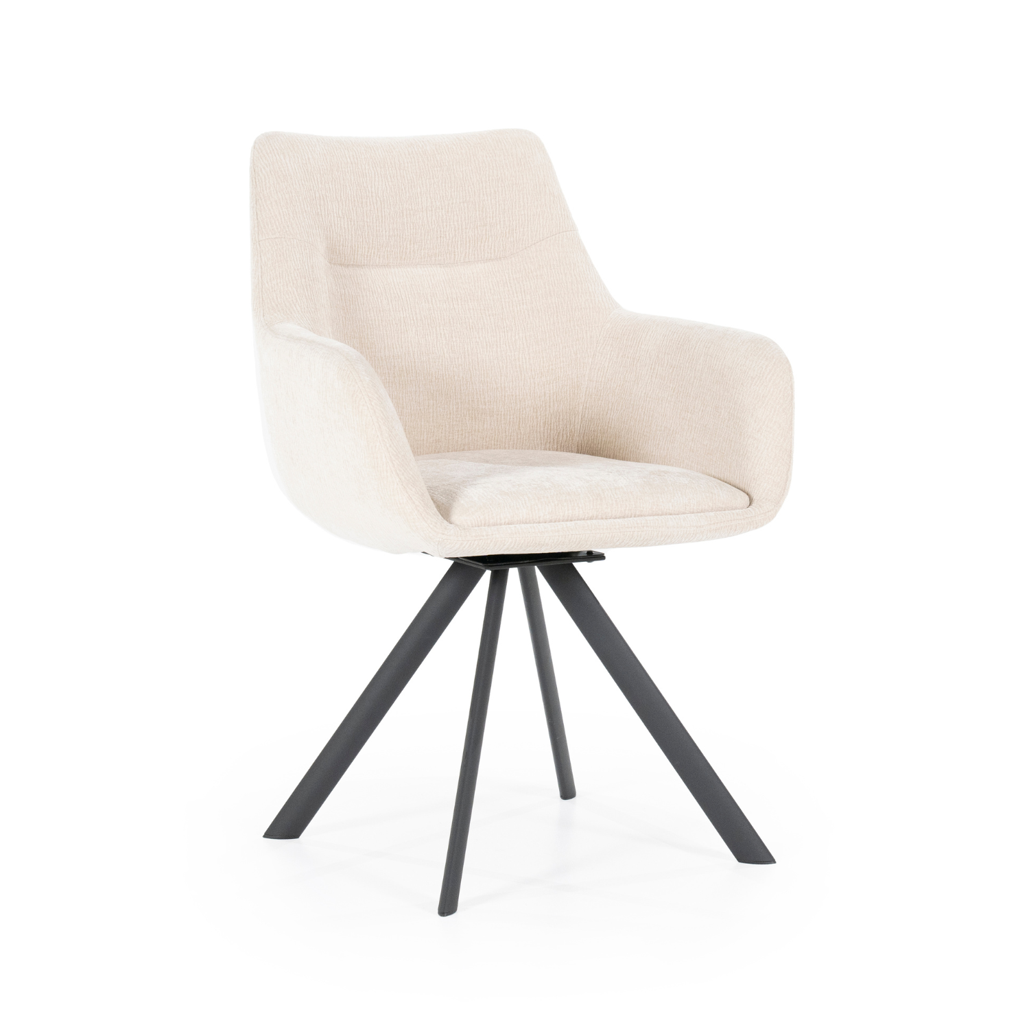 De stabiele, metalen basis met een beschermende coating is uitgerust met een draaimechanisme van 180°, wat de praktische toepassing van het meubel verhoogt. Fauteuil Bliss valt op door zijn stevige afwerking en moderne design, waardoor het zowel in de woonkamer, eetkamer als op kantoor perfect tot zijn recht komt.