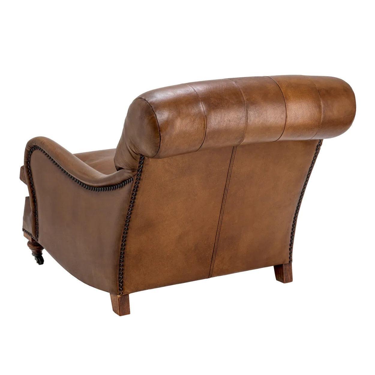 Fauteuil Caledonian Club is de essentie van klassiek en elegant, datgene waar u naar op zoek bent in uw interieur. De diepe tabaksbruine leren bekleding, met delicate knopen, geeft het een unieke, onmiskenbare uitstraling. In combinatie met verfijnde armleuningen en rugleuning, wordt dit meubel een symbool van luxe en comfort. Details van antiek messing voegen een nobele uitstraling toe, terwijl ze tegelijkertijd het traditionele ontwerp benadrukken.