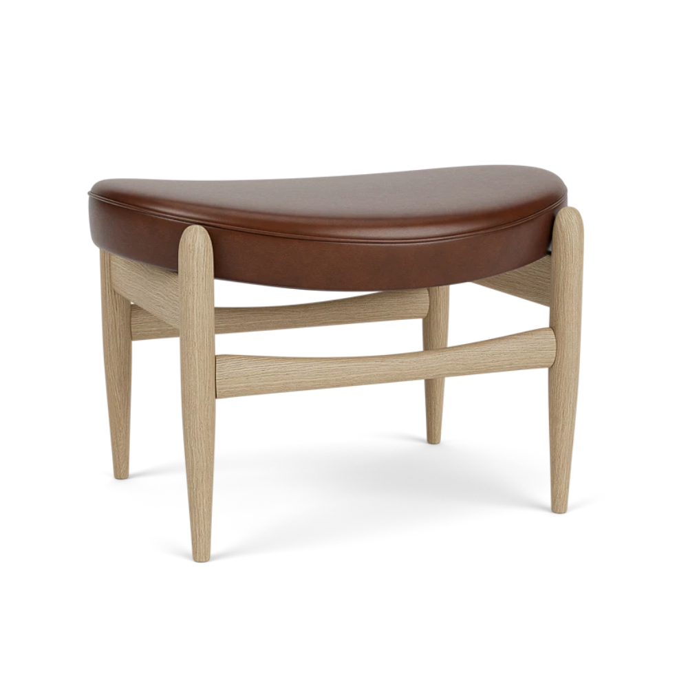 Voetenbank ELIZABETH bruin leer met eiken basis