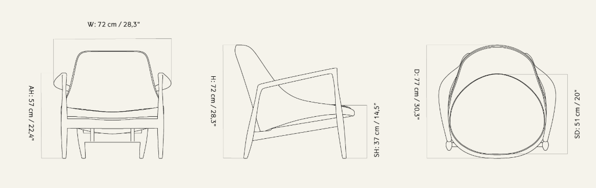 Fauteuil Elizabeth is een verfijnd voorbeeld van Deens modernistisch design, dat elegantie, comfort en tijdloze vorm combineert. Ontworpen met een uitstekend gevoel voor proporties, valt het op door zijn zachte, vloeiende silhouet en kenmerkende, gebeeldhouwde armleuningen die het een lichte en majestueuze uitstraling geven. De inspiratie voor de naam komt van koningin Elizabeth II – het model kreeg de bijnaam Elizabeth Chair nadat de monarchin samen met prins Philip twee exemplaren had aangeschaft tijdens een officiële bezoek aan Denemarken in 1958.