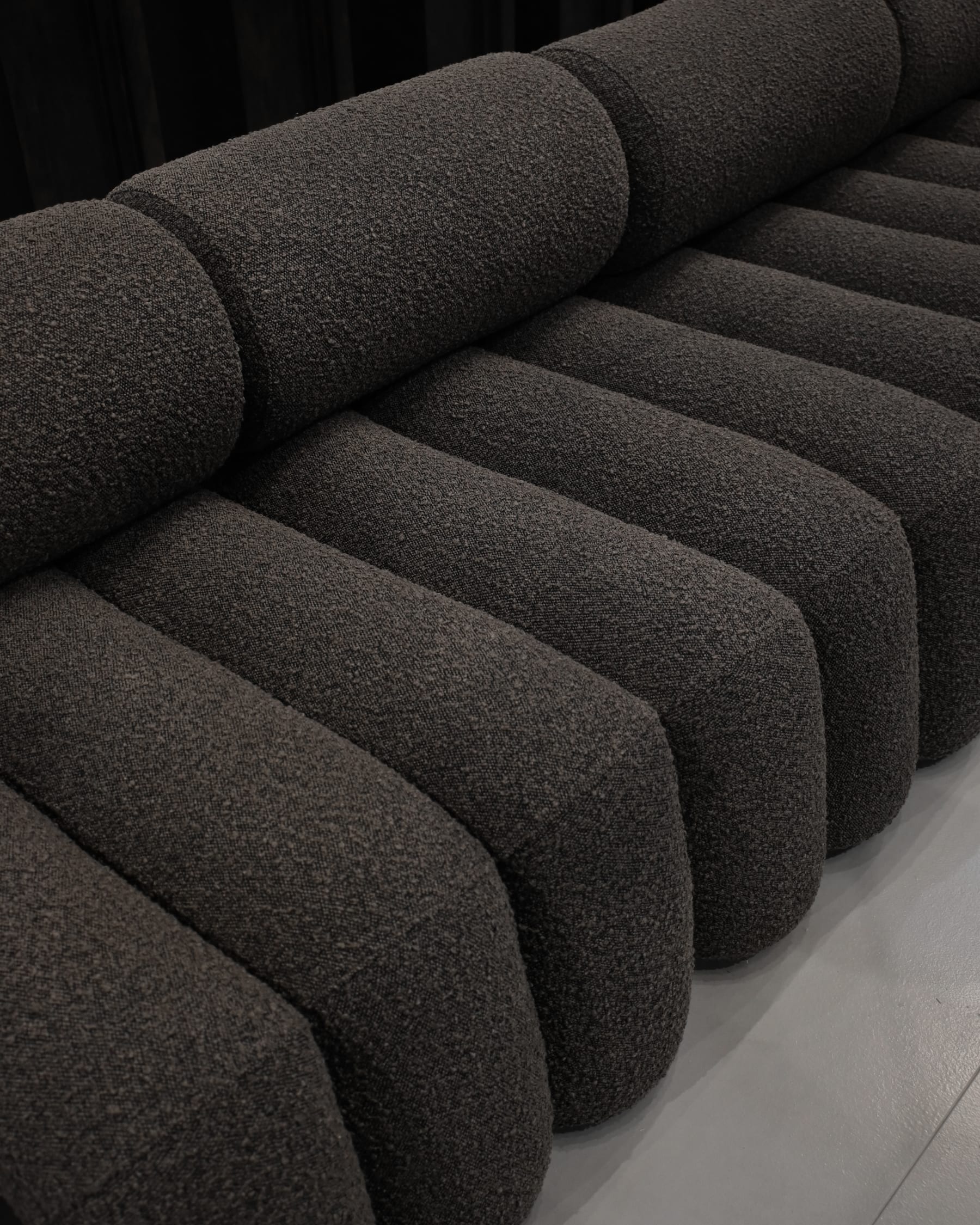 Fauteuil Foku, geïnspireerd door de rustige esthetiek van Japanse zen-tuinen, brengt een gevoel van organische harmonie in de collectie. De geribbelde zitting verwijst naar patronen van sierlijk gevormd zand, waarbij geometrische precisie wordt gecombineerd met natuurlijke inspiratie. Zachte lagen schuim en de volle, omarmende vorm zorgen ervoor dat de fauteuil niet alleen comfortabel is, maar ook visueel bijzonder aantrekkelijk.