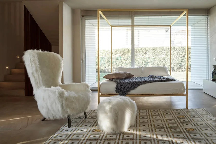 Fauteuil Guelfo Fur is een unieke versie van de klassieke oorfauteuil uit de Guelfo-collectie, ontworpen door Lapo Ciatti. Bekleed met wit kunstbont, biedt het niet alleen een origineel uiterlijk, maar ook maximaal comfort en gezelligheid. Zijn zachte vorm en omarmende rugleuning creëren de ideale plek om te ontspannen en tot rust te komen.