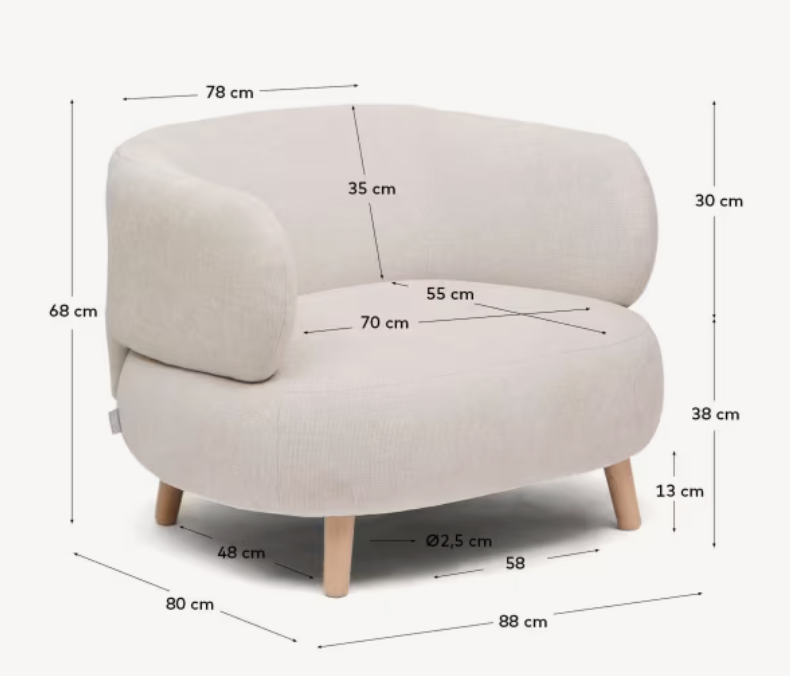 De constructie van de fauteuil is gemaakt van vurenhout en E0 MDF-platen. De vulling van de zitting en rugleuning bestaat uit schuim met een gemiddelde hardheid, wat zorgt voor hoog gebruikscomfort. Fauteuil wordt lokaal in Europa geproduceerd met processen die de CO₂-uitstoot beperken — een bewuste keuze voor wie niet alleen op zoek is naar comfort, maar ook naar milieuvriendelijkheid. Dankzij het doordachte ontwerp en de verfijnde verhoudingen is de beklede fauteuil Luisa een stijlvolle aanvulling voor elke woonkamer.