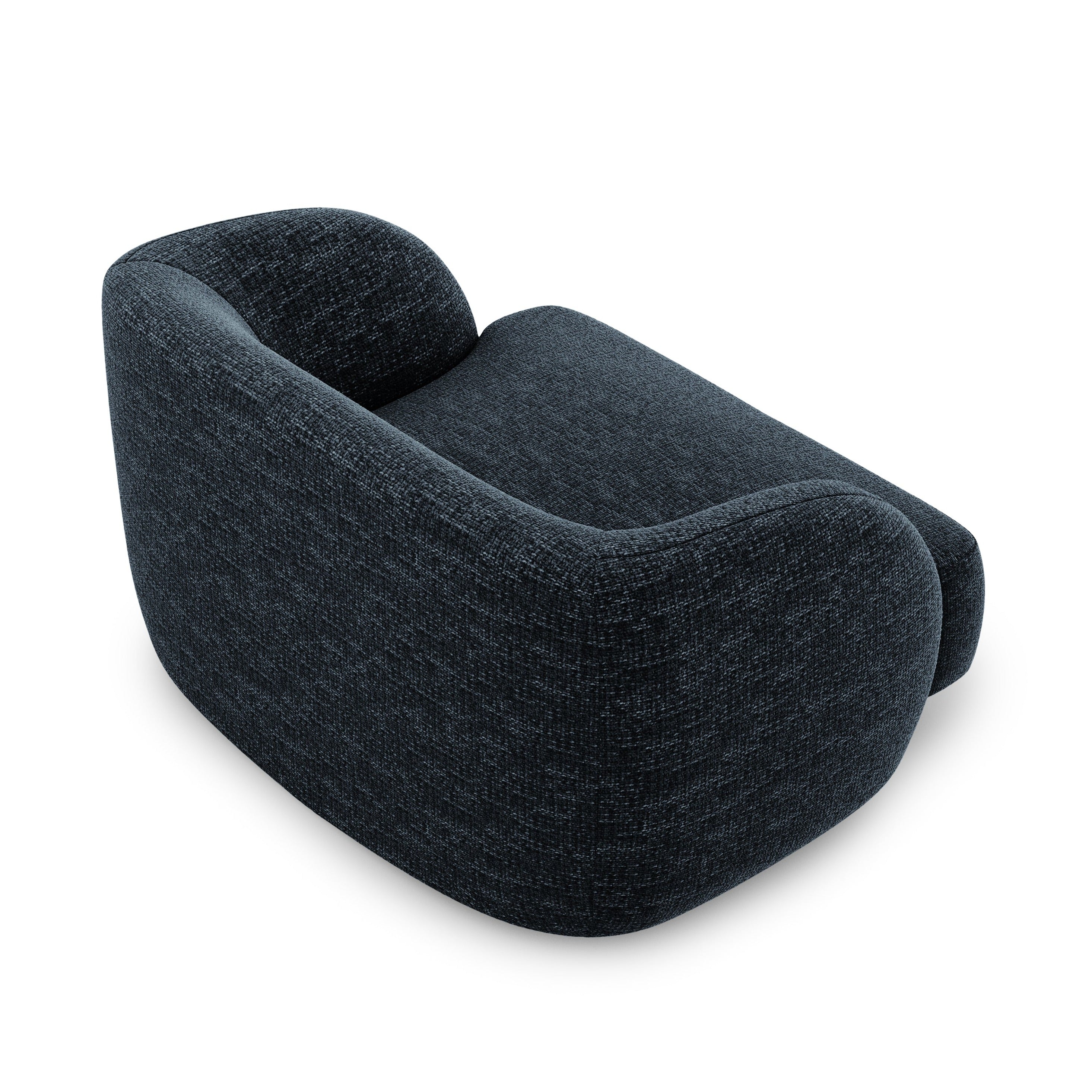 Moderne fauteuil Miley betovert met zijn ronde vormen, die perfect aansluiten bij de nieuwste interieurtrends. Naast de unieke, minimalistische vorm, biedt hij een ongeëvenaard comfort. De lage, omarmende rugleuning gaat soepel over in de gevormde armleuningen, wat er zeer samenhangend en natuurlijk uitziet. Het biedt ook de juiste ondersteuning in elke zithouding.