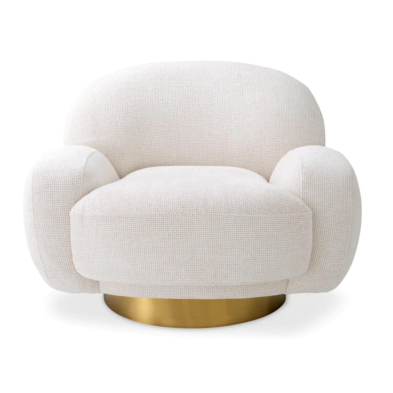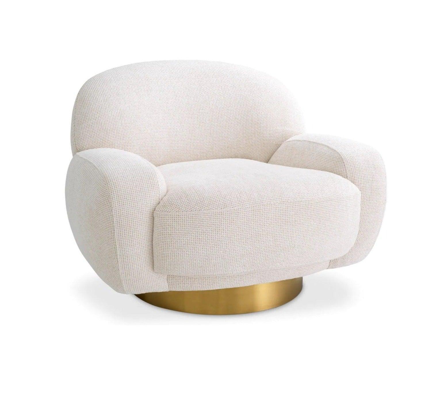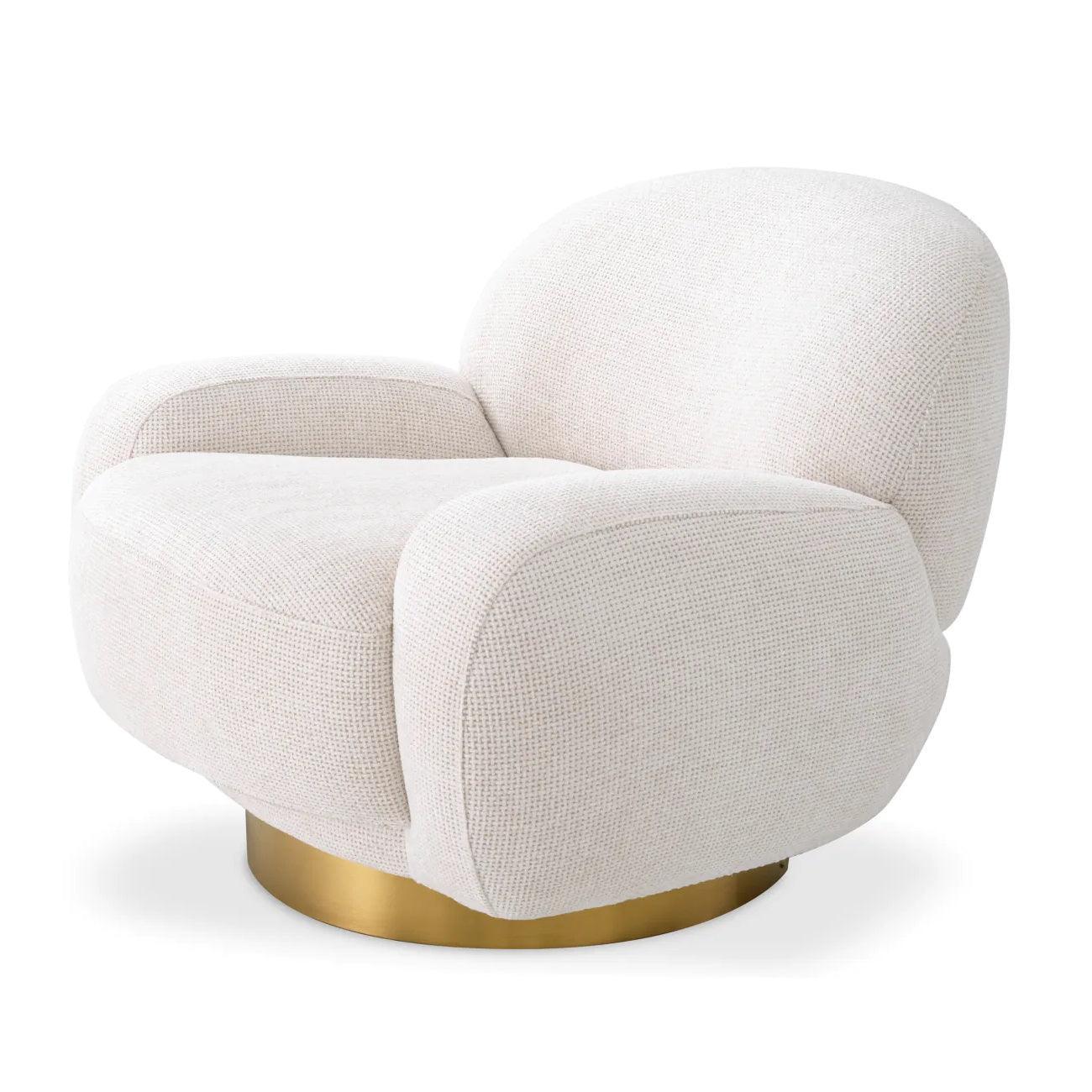 De zachte, organische vorm van de fauteuil Udine nodigt uit tot ontspanning en rust. Dit meubelstuk heeft elk element met een doel - u comfortabel en rustig laten voelen. De bekleding in gebroken wit Lyssa is niet alleen visueel mooi, maar ook uitzonderlijk aangenaam om aan te raken. Het is een stof die u omarmt als een wolk, waardoor u onvergetelijke ervaringen beleeft tijdens het zitten. De draaibare basis van geborsteld messing is een elegant detail dat de fauteuil Udine karakter en duurzaamheid geeft. Dit meubelstuk trekt niet alleen de aandacht, maar is ook klaar om u momenten van ontspanning en rust te bieden.