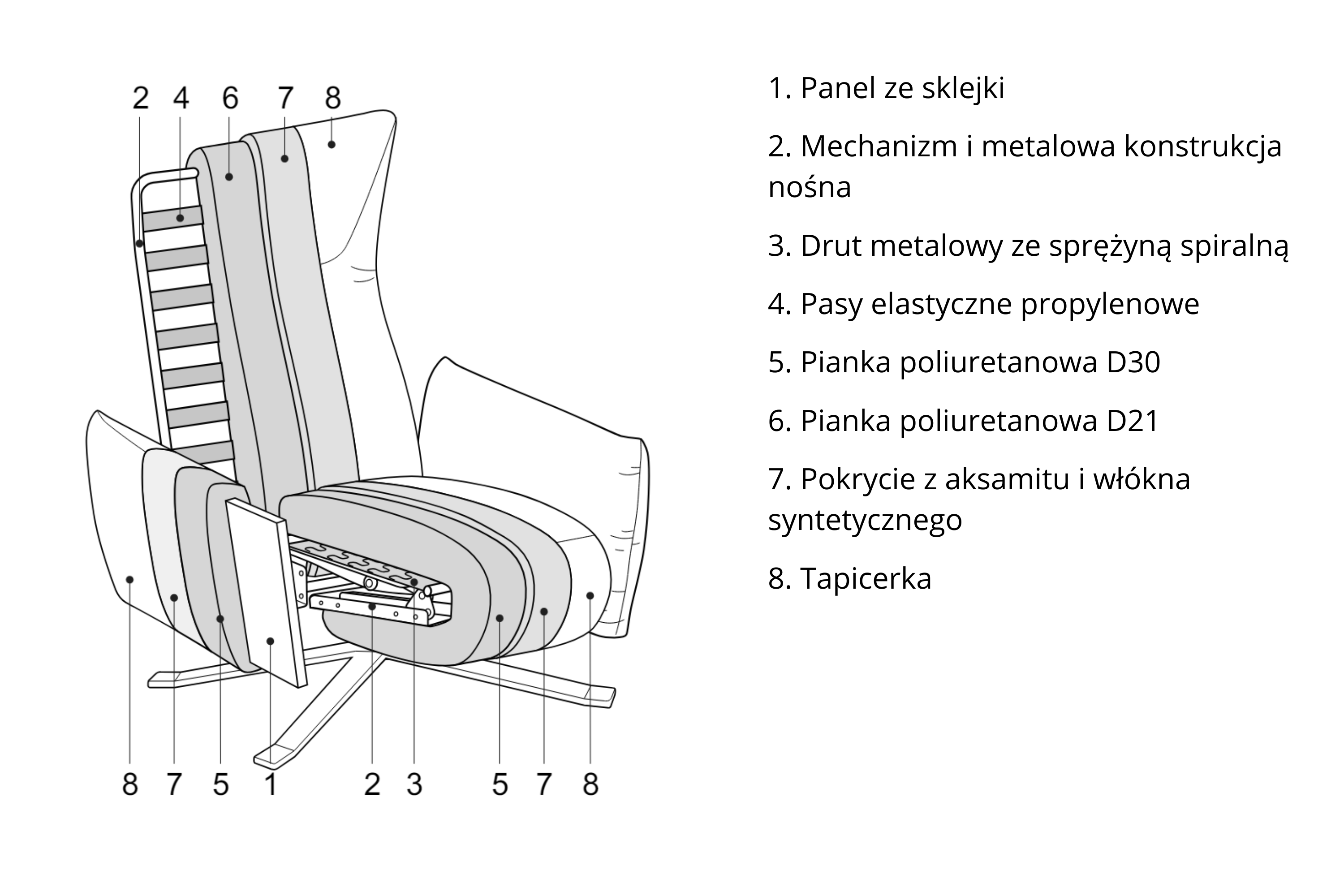 De toegestane tolerantiegraad voor gestoffeerde meubels bedraagt ±4 cm. Deze verschillen zijn het gevolg van de eigenschappen van de gebruikte materialen en de specificiteit van het stoffeerproces.