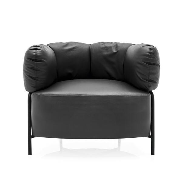 Fotel Quadrotta, wsparty na metalowej ramie dostępnej w trzech różnych wykończeniach, ma miękkie i otaczające go oparcie w połączeniu z wygodnym siedziskiem z wewnętrznymi elastycznymi paskami, zapewniającymi zarówno wygodę, jak i trwałość. Może być tapicerowany skórą lub tkaniną.