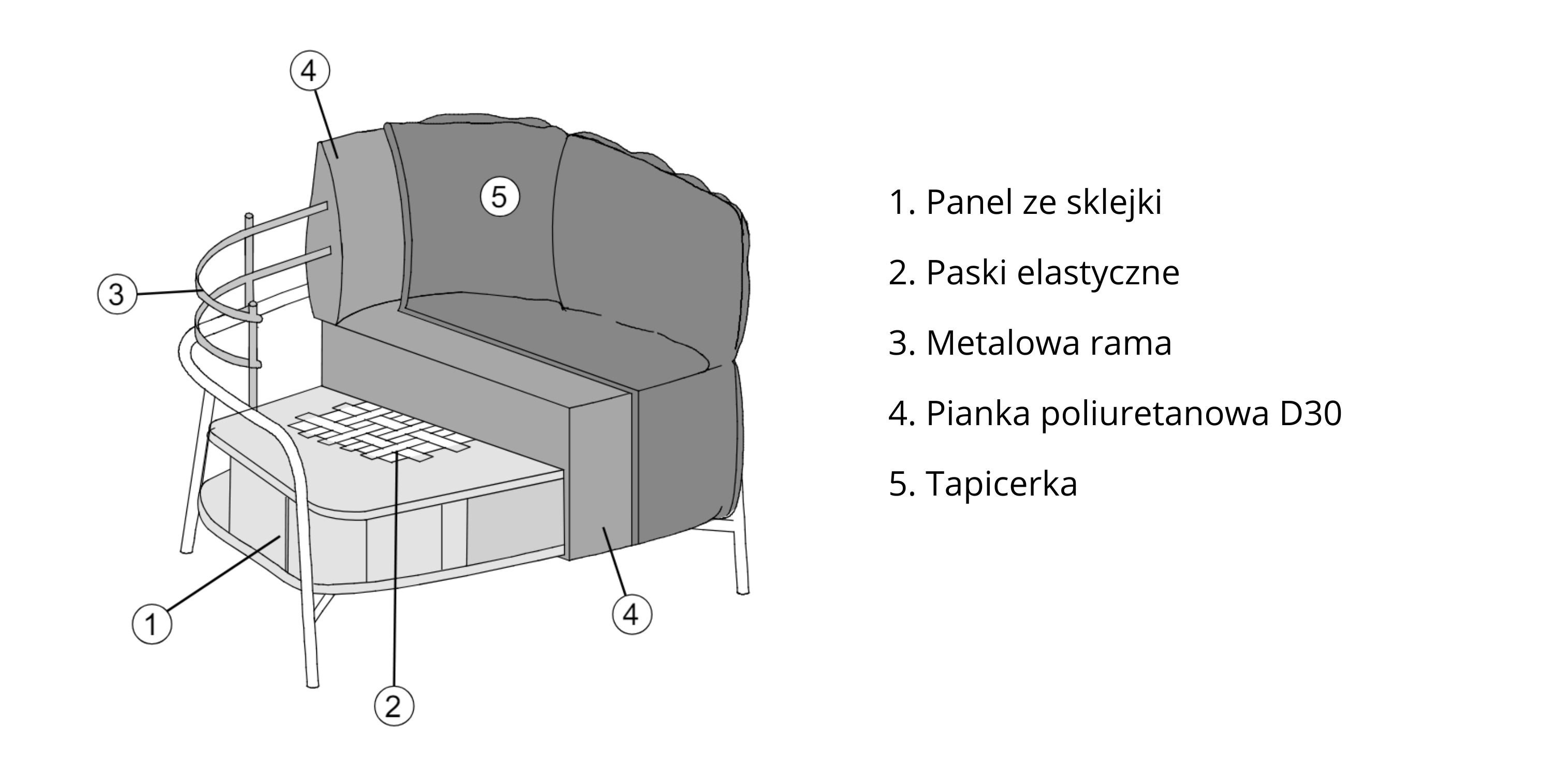 Materiał: sklejka, metal, tkanina, gąbka D30
