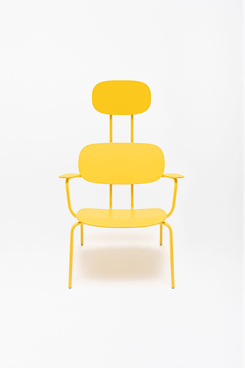Fauteuil met hoofdsteun uit de New School-collectie biedt een nieuw niveau van comfort, ontworpen door studio Form Us With Love. De uitgebreide versie van de stoel uit deze serie, uitgerust met comfortabele armleuningen, een geïntegreerde voetensteun en hoofdsteun, zorgt voor de optimale hellingshoek van de zitting en een diepe ontspanningspositie. Fauteuil is perfect voor loungegebieden, hotel-lobby's of woonkamers, en het brede scala aan bekledingsstoffen en de optie voor een grotere, aparte voetensteun verhogen het comfort nog verder.