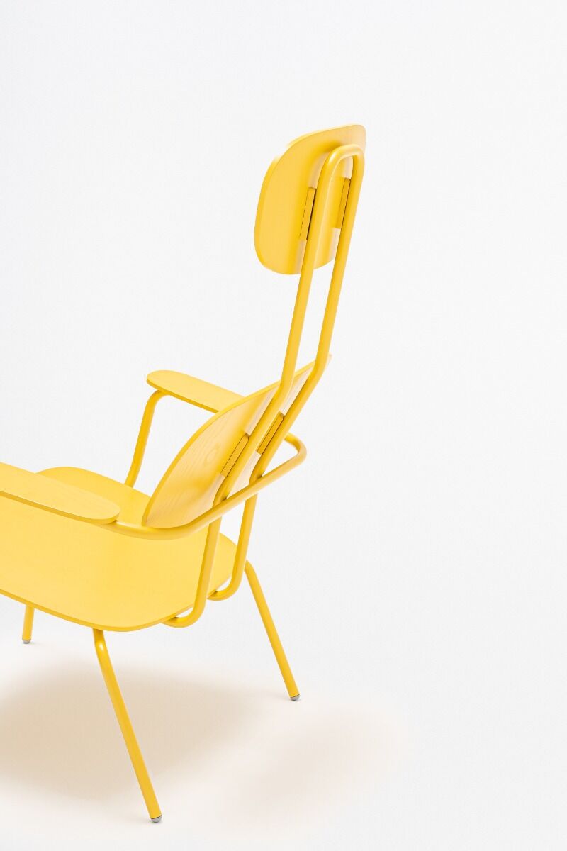 Fauteuil met hoofdsteun uit de New School-collectie biedt een nieuw niveau van comfort, ontworpen door studio Form Us With Love. De uitgebreide versie van de stoel uit deze serie, uitgerust met comfortabele armleuningen, een geïntegreerde voetensteun en hoofdsteun, zorgt voor de optimale hellingshoek van de zitting en een diepe ontspanningspositie. Fauteuil is perfect voor loungegebieden, hotel-lobby's of woonkamers, en het brede scala aan bekledingsstoffen en de optie voor een grotere, aparte voetensteun verhogen het comfort nog verder.
