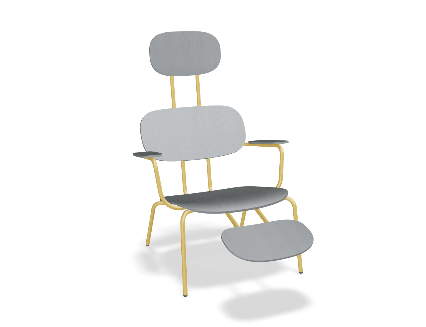 Fauteuil met hoofdsteun uit de New School-collectie biedt een nieuw niveau van comfort, ontworpen door studio Form Us With Love. De uitgebreide versie van de stoel uit deze serie, uitgerust met comfortabele armleuningen, een geïntegreerde voetensteun en hoofdsteun, zorgt voor de optimale hellingshoek van de zitting en een diepe ontspanningspositie. De fauteuil is perfect voor loungegebieden, hotel-lobby's of woonkamers, en het brede scala aan bekledingsstoffen en de optie voor een grotere, aparte voetensteun verhogen het comfort nog verder.