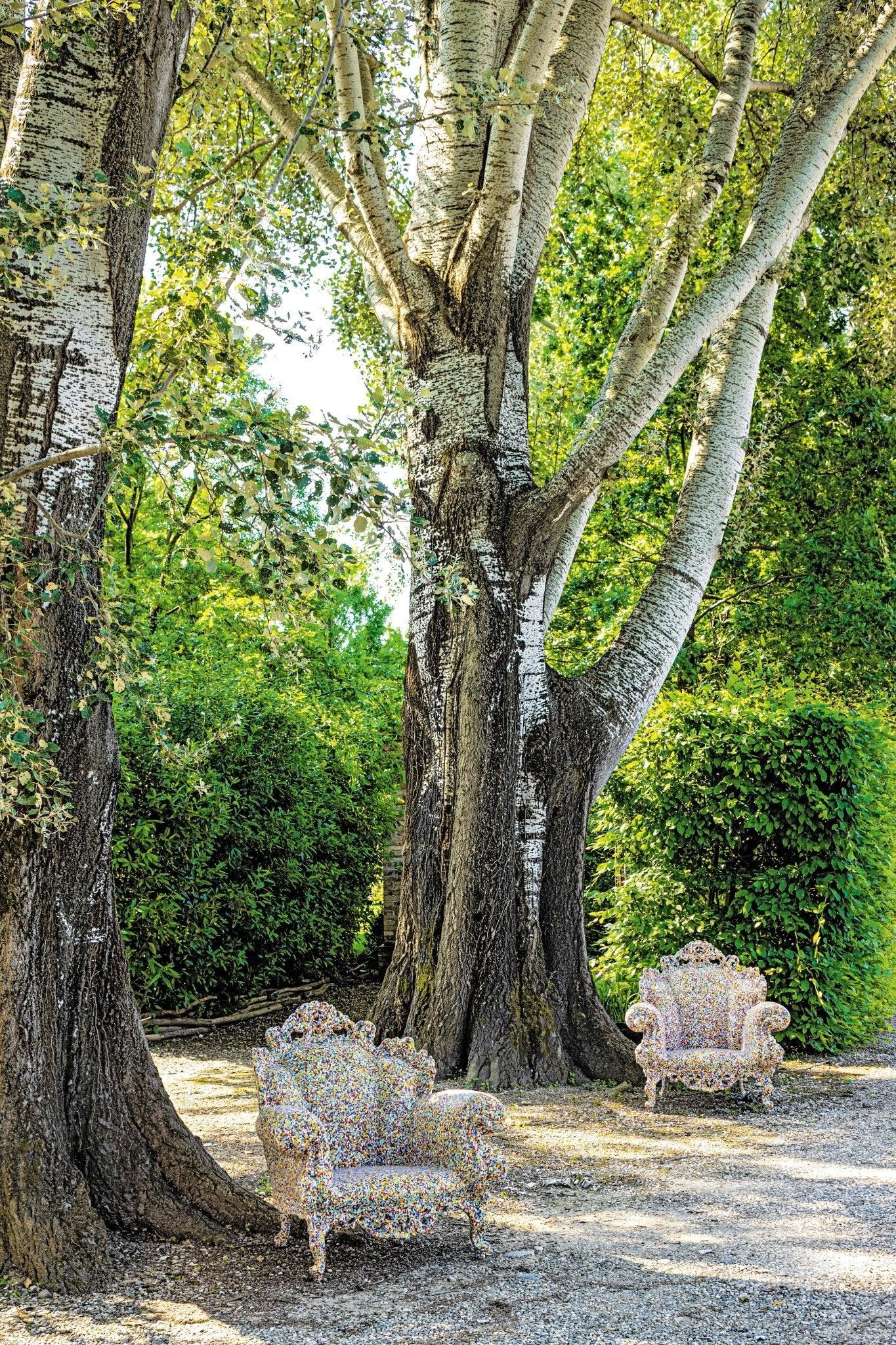 Proust tot fauteuil van het Italiaanse merk Magis, geïnspireerd door het legendarische ontwerp van Alessandro Mendini uit 1978 - Poltrona di Proust. Deze barokke fauteuil met een rijk versierde frame heeft de aandacht getrokken van designliefhebbers en schoonheid sinds zijn ontstaan, en dankzij het merk Magis is hij nu beschikbaar in een moderne versie van polyethyleen.