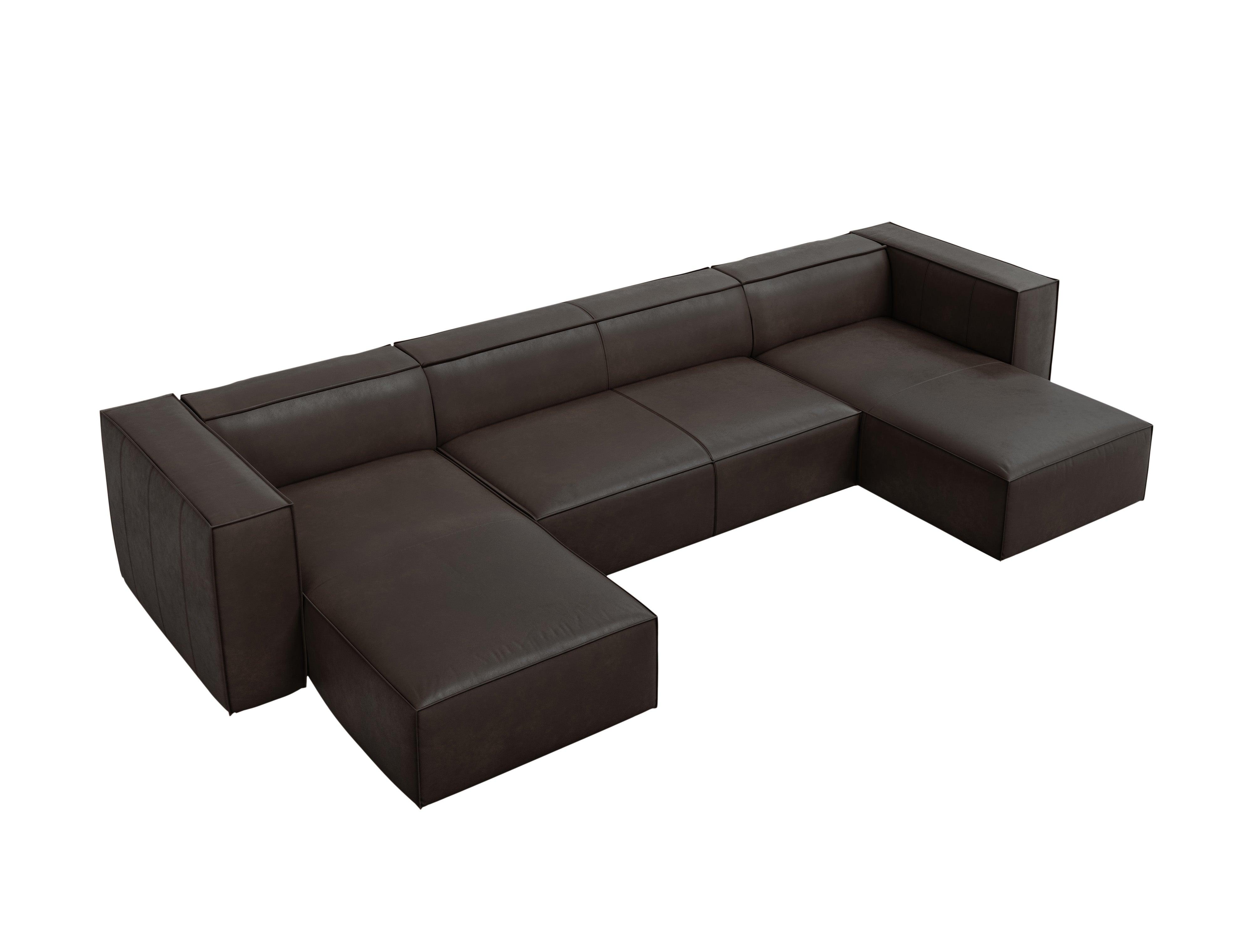 Leren hoekbank in U-vorm MADAME donkerbruin