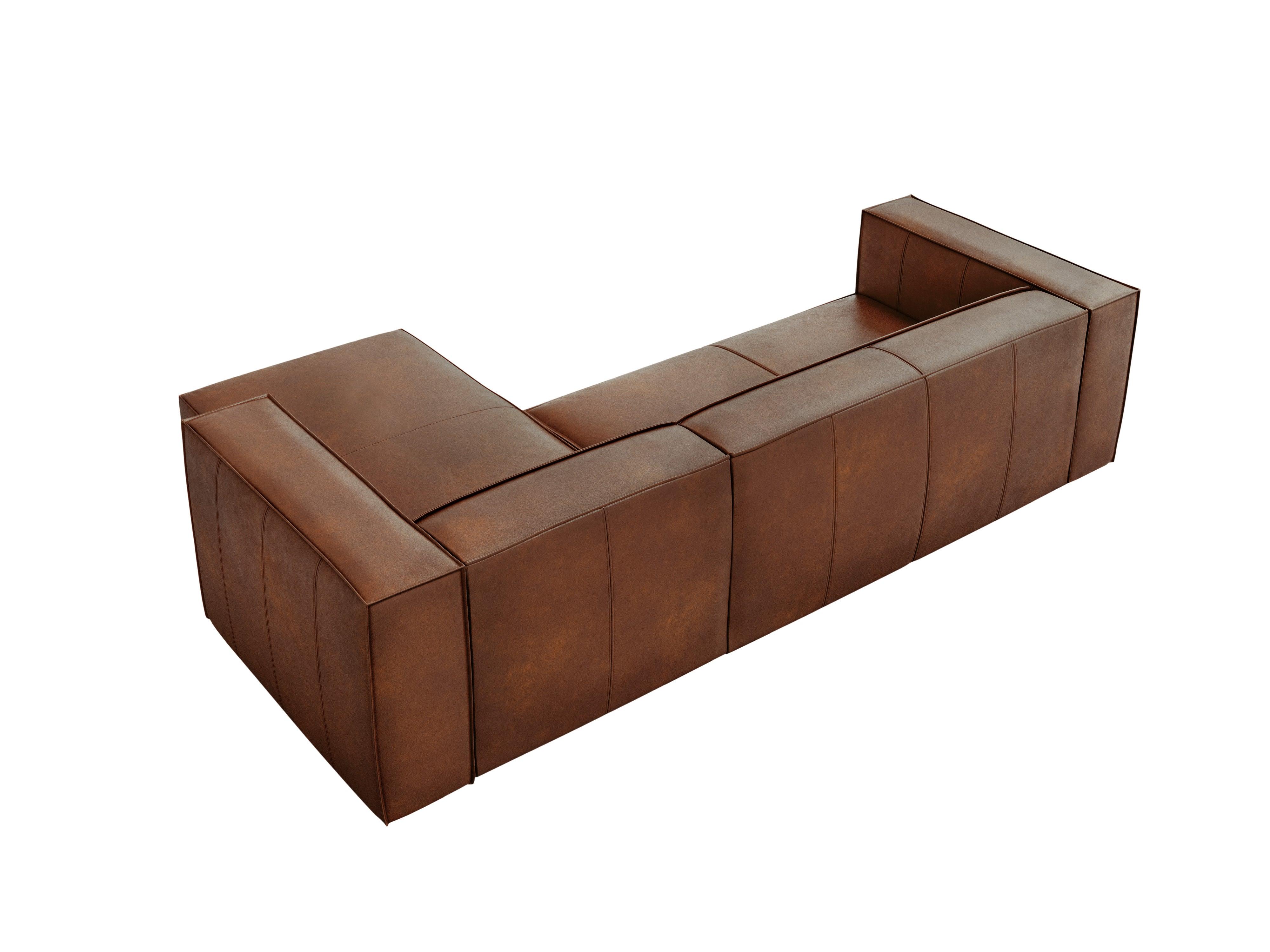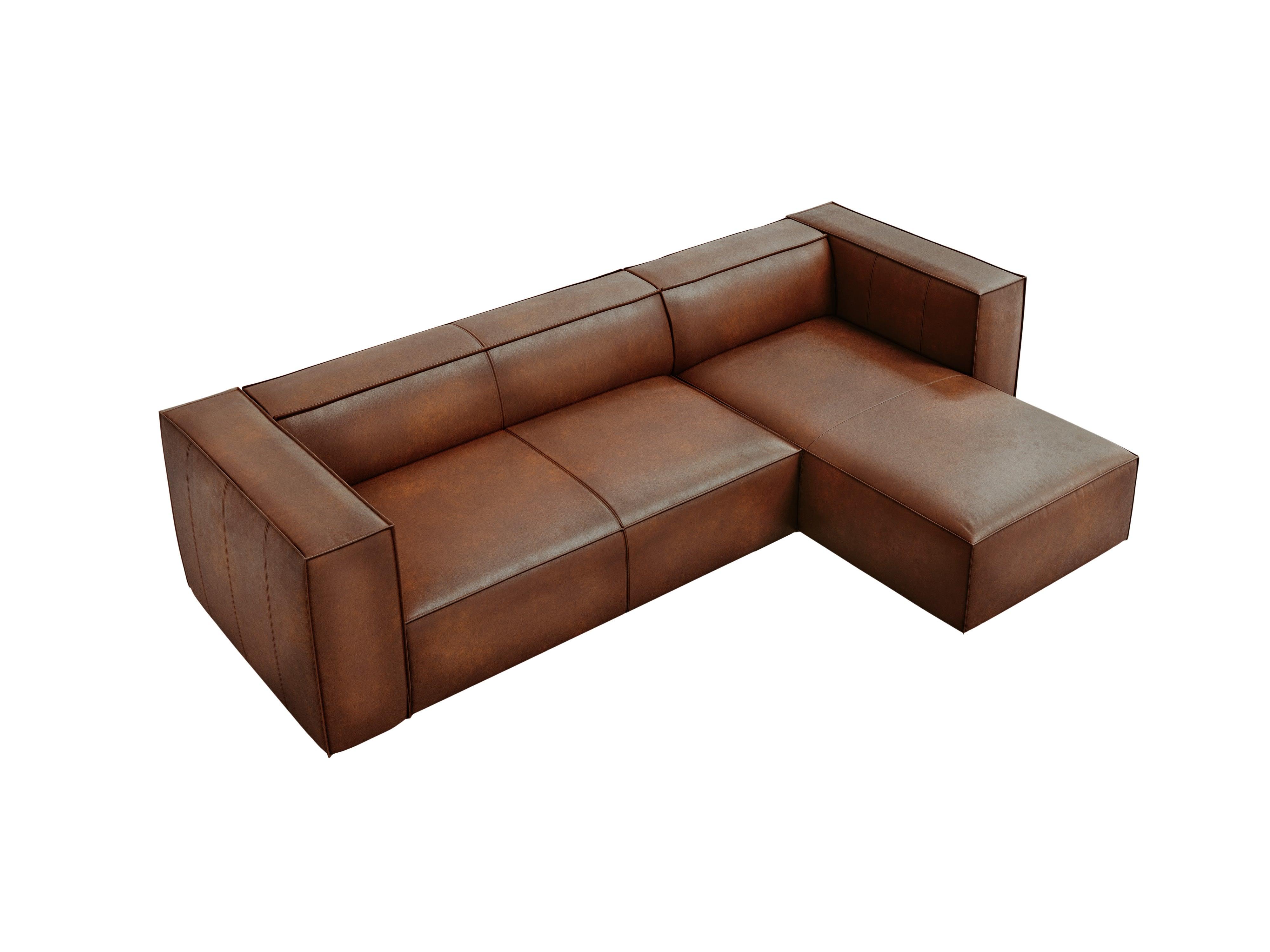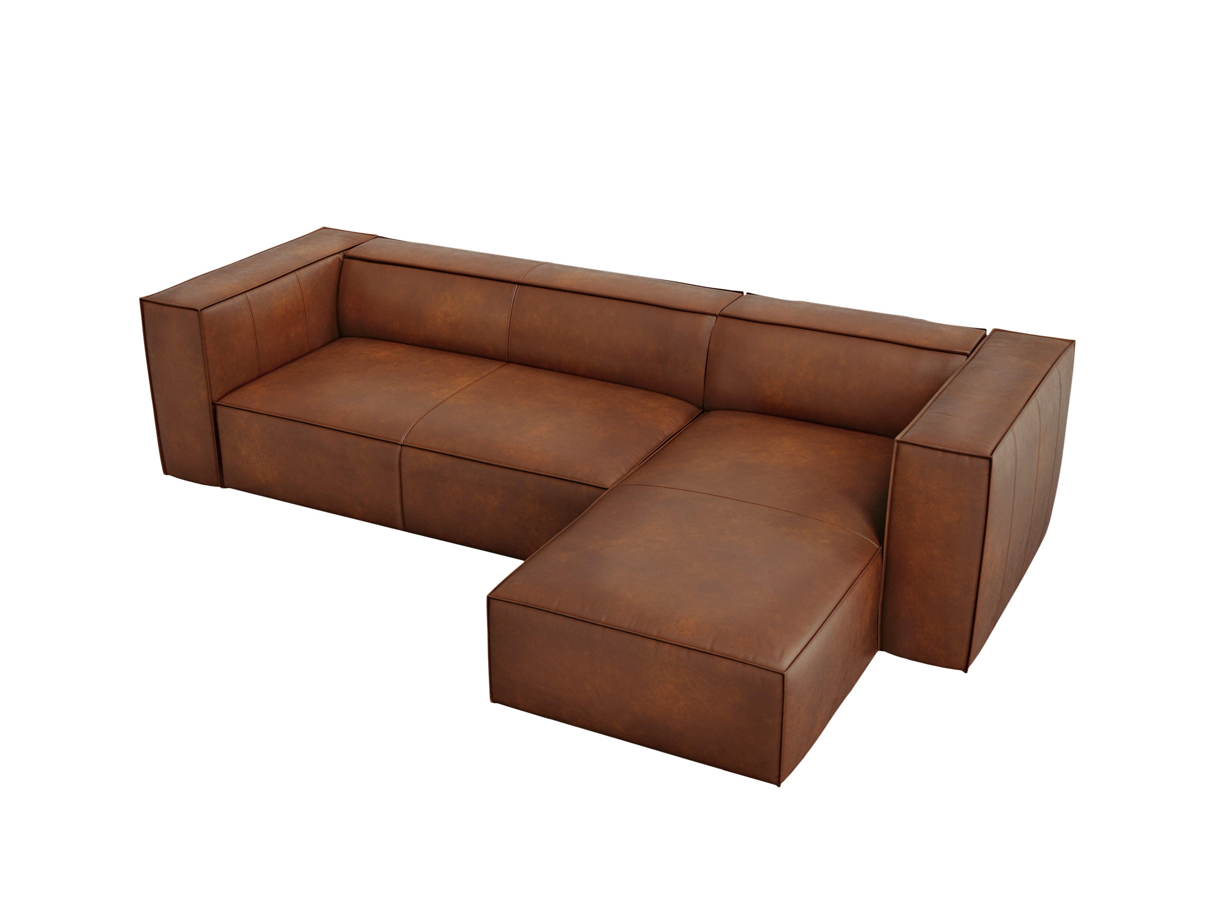 Skórzany narożnik prawostronny Madame to idealne połączenie elegancji z ponadczasową formą. Geometryczna, nieco surowa bryła świetnie sprawdzi się we wnętrzach modern classic z nutą nowoczesności. Dekoracyjne przeszycia na skórzanej tapicerce dodają całości niezwykłego charakteru. Drewniane nóżki z drewna bukowego nie tylko pięknie się prezentują, ale stanowią też solidną podstawę.