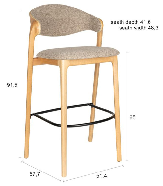 Elegante hocker Babington is een unieke meubelstuk dat een warme sfeer en tijdloze elegantie in uw interieur brengt. Geïnspireerd door de stijl van de jaren '50, verrast het met een stevige, houten basis in een natuurlijke afwerking, waarbij de voet soepel overgaat in de rugleuning. Dit is een waar voorbeeld van ambachtelijk vakmanschap, waar natuurlijk hout prachtig contrasteert met de lichte bekleding van de zitting en rugleuning. Het zachte kussen van de zitting garandeert hoog comfort, waardoor de hocker perfect is voor bijeenkomsten met dierbaren.