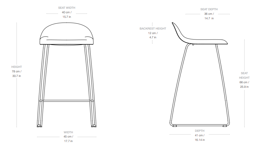 Hocker GUBI 3D witte zitting met verchroomde basis