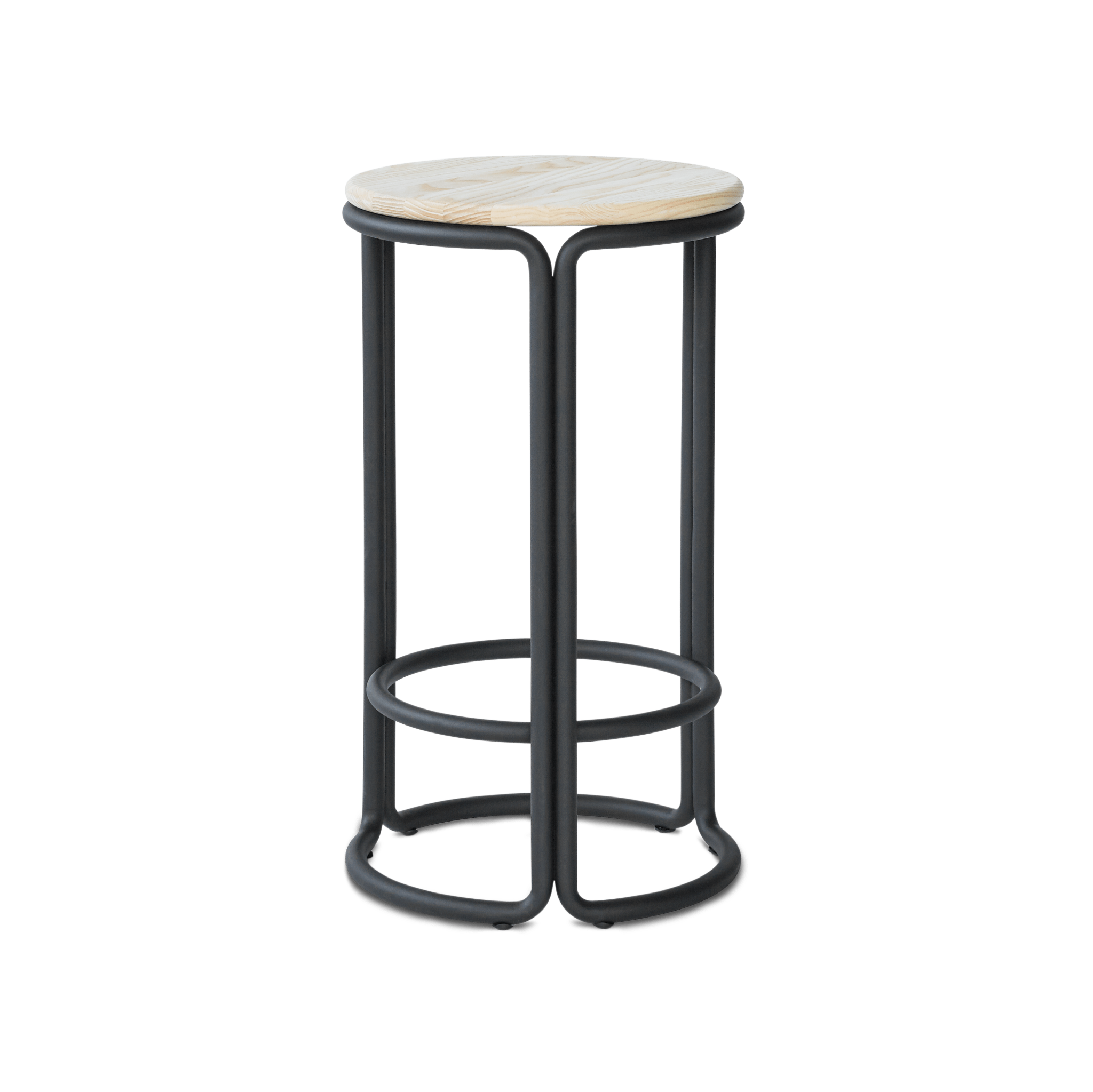 Hocker Hardie is een minimalistisch ontwerp met een tijdloos karakter, dat eenvoud in vorm combineert met functionaliteit. Het klassieke ronde zitvlak steunt op drie gebogen, stalen buisvormige poten, die extra met elkaar zijn verbonden om de stabiliteit en duurzaamheid van de constructie te vergroten. Dit kenmerkende detail benadrukt de soliditeit en betrouwbaarheid van het meubel.