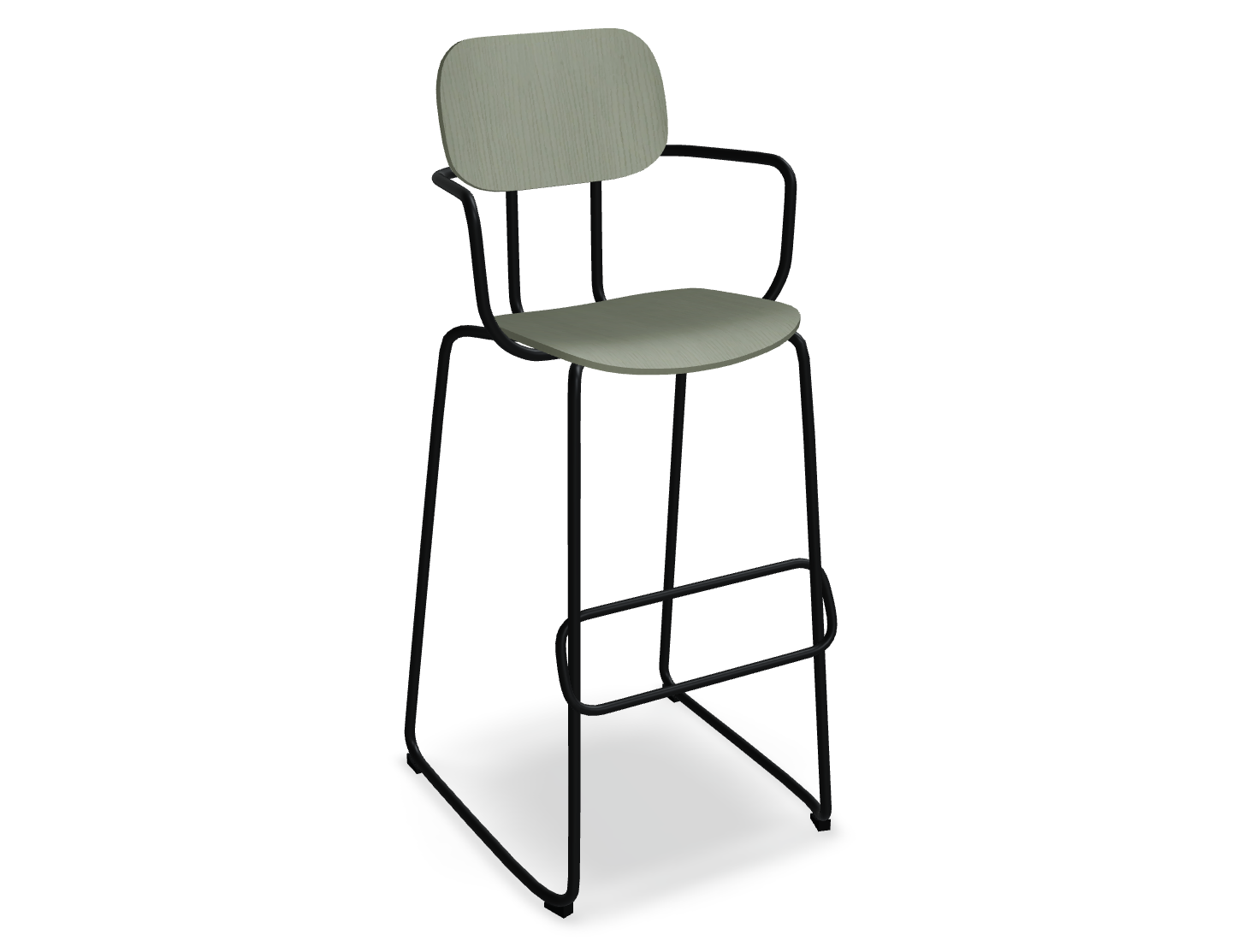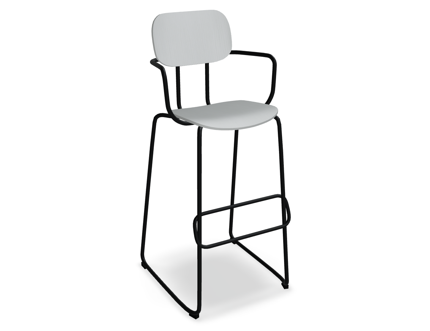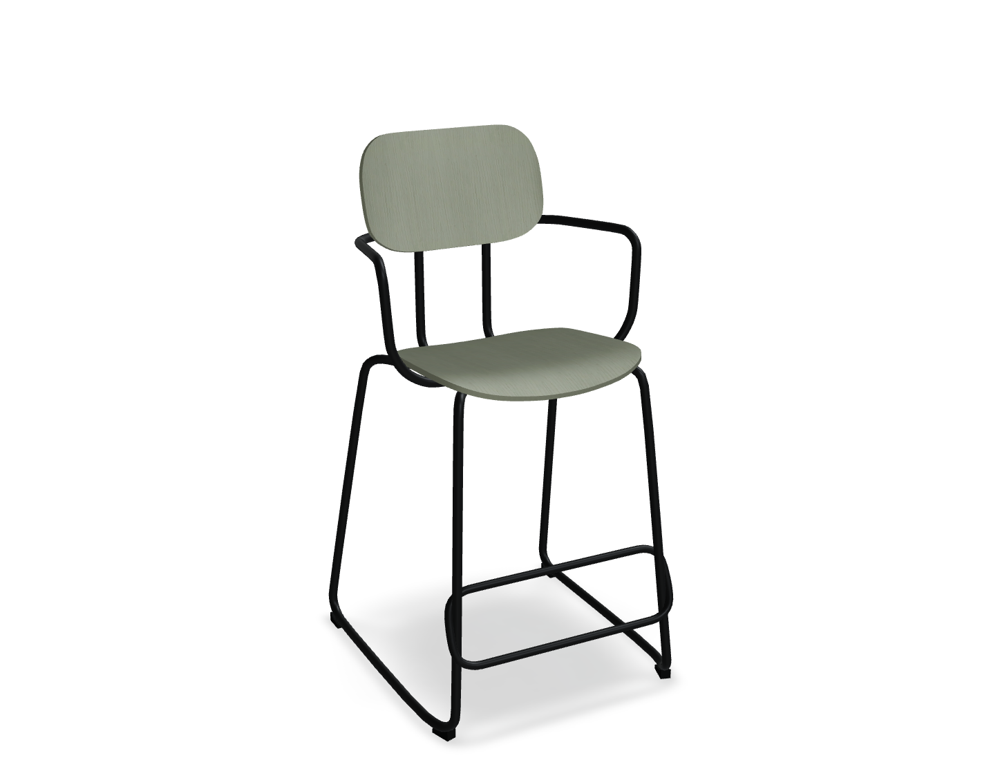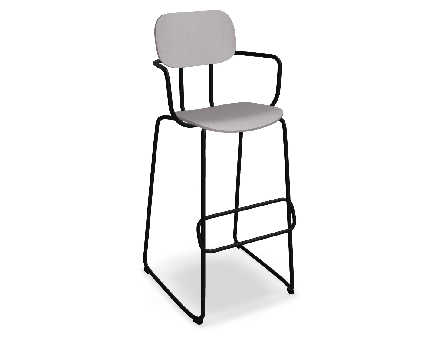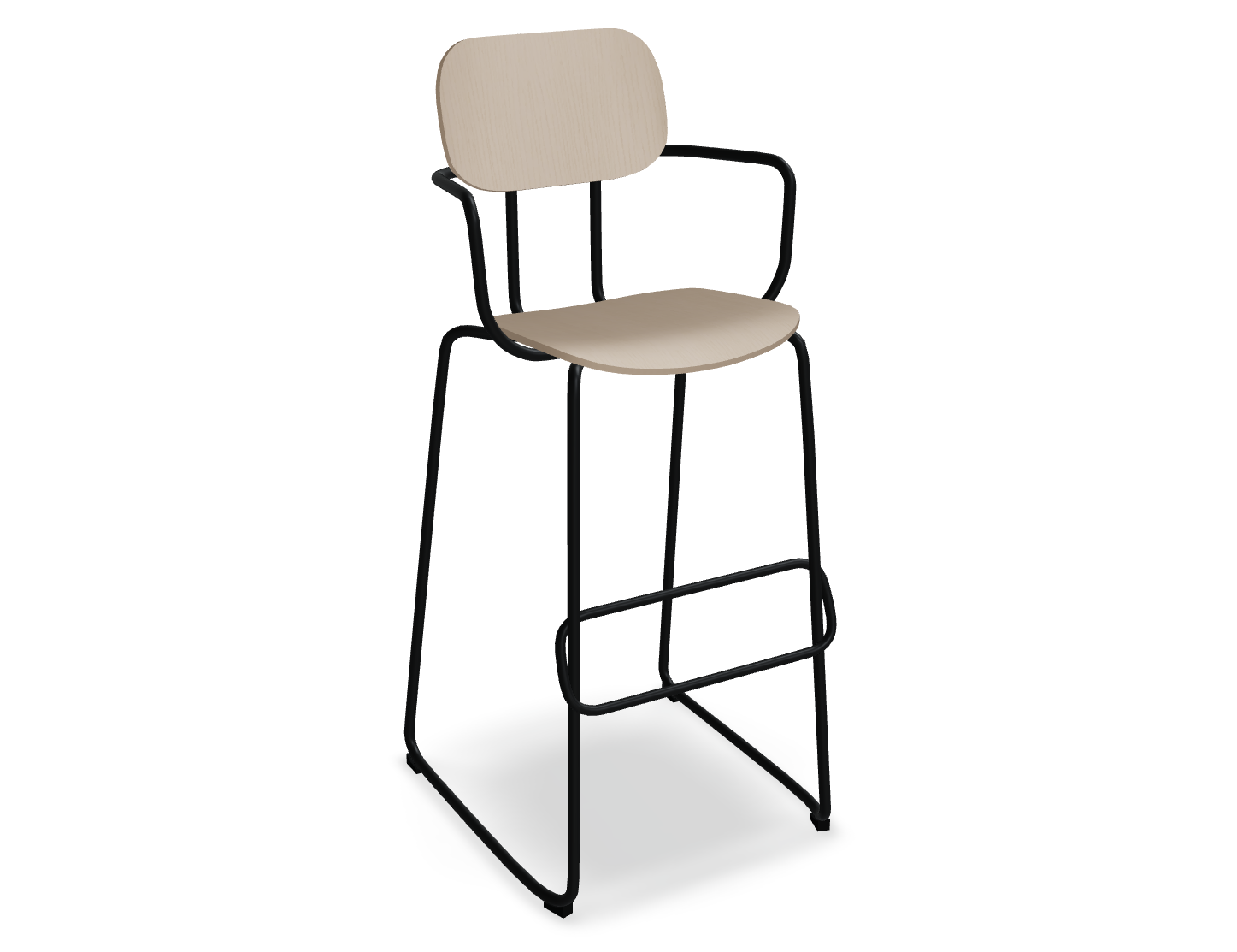 Hocker New School, ontworpen door studio Form Us With Love, is een moderne herinterpretatie van de traditionele schoolstoel. Deze kruk is perfect voor kantoorrestaurants, bars, cafés en keukens met een hoge tafel. Verkrijgbaar in twee hoogtes, waardoor hij zich aan verschillende tafels kan aanpassen. Hij valt op door de geïntegreerde voetensteun en optionele armleuningen, wat het gebruiksgemak vergroot.