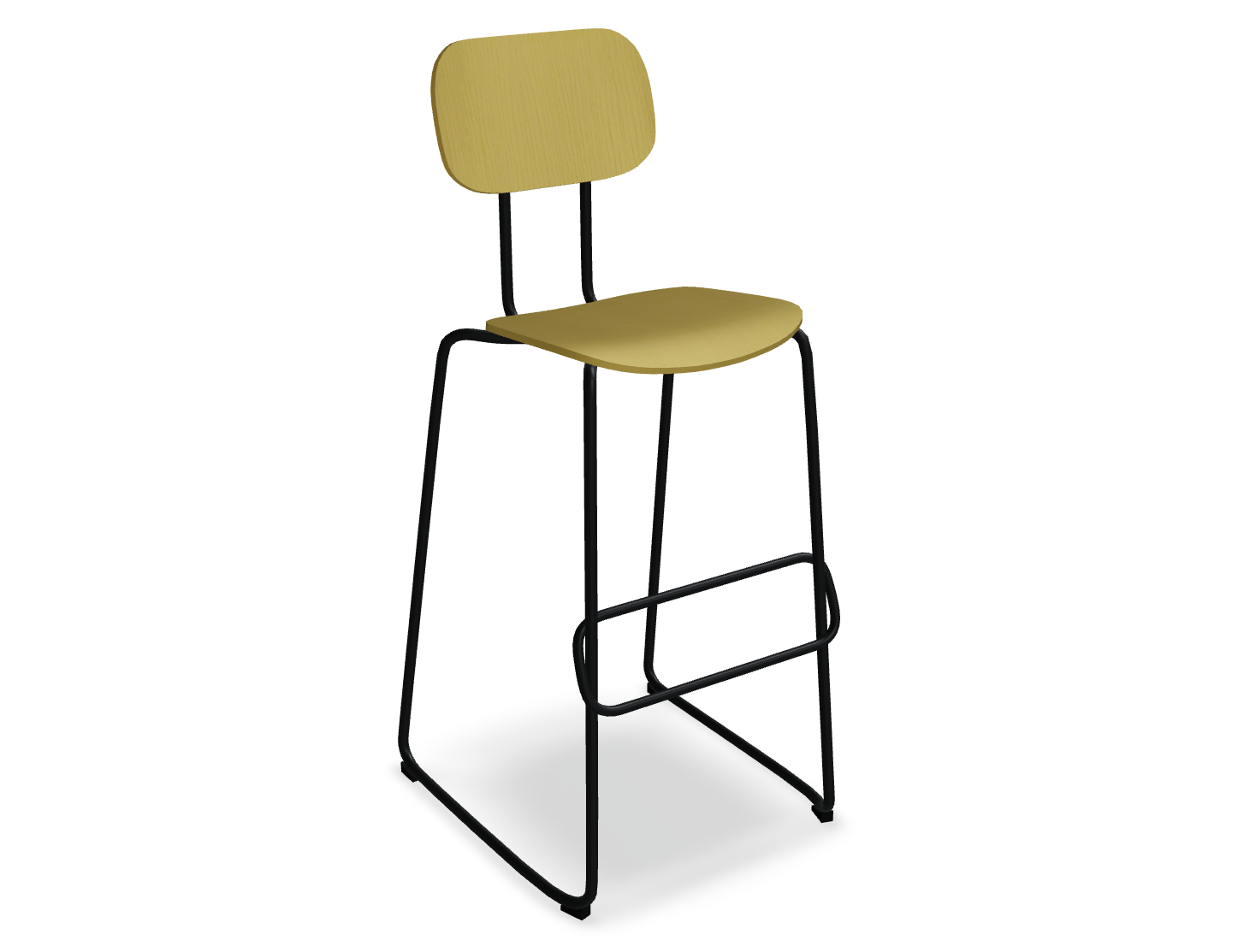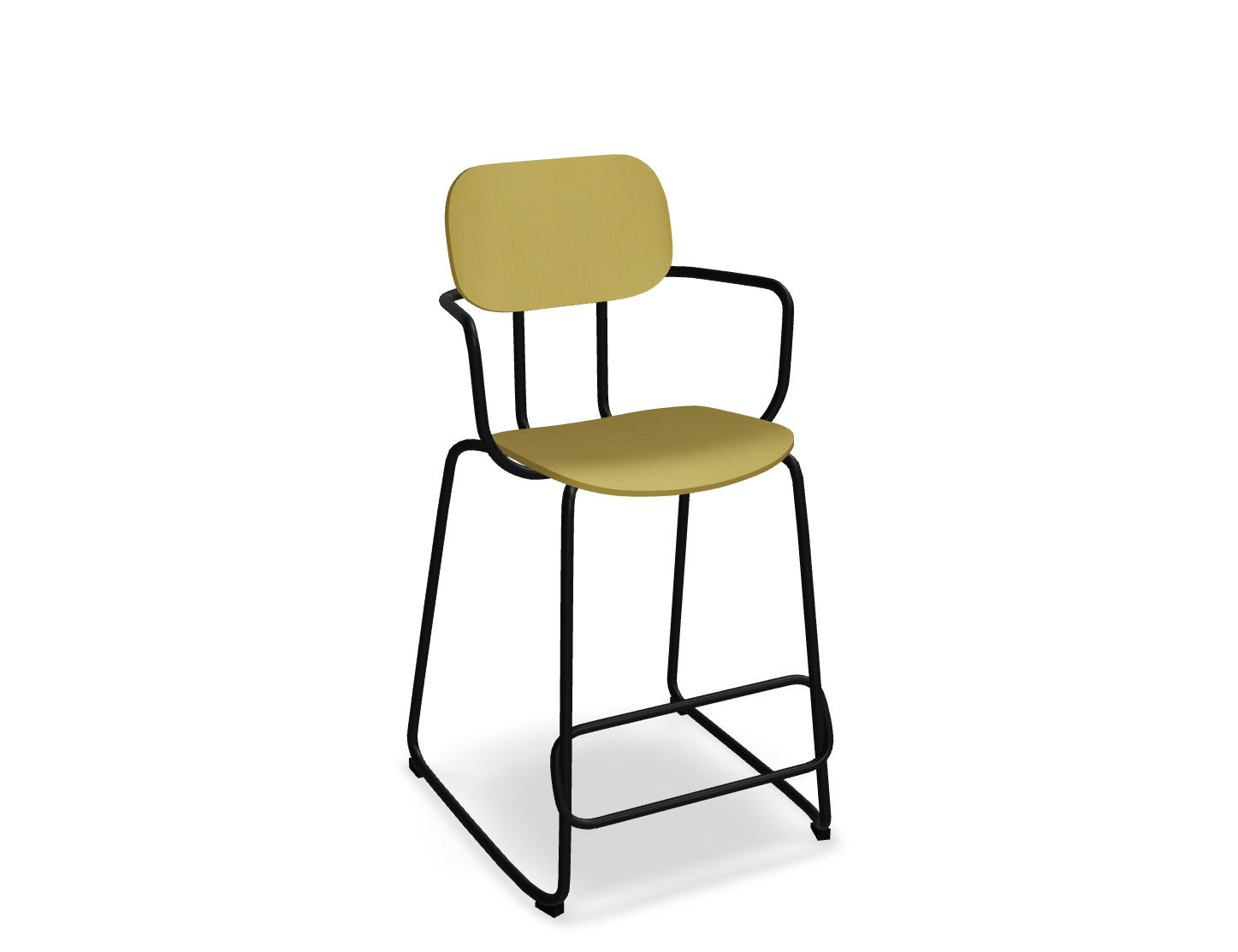 Het metalen frame in combinatie met een zitting en rugleuning van multiplex geeft het meubel een moderne uitstraling, benadrukt door een breed scala aan kleuren. De hockers kunnen tot 5 stuks gestapeld worden, wat het opslaan en beheren van de ruimte vergemakkelijkt. De kruk is onderhoudsvriendelijk en ideaal voor dynamische, vaak veranderende indelingen in openbare ruimtes.