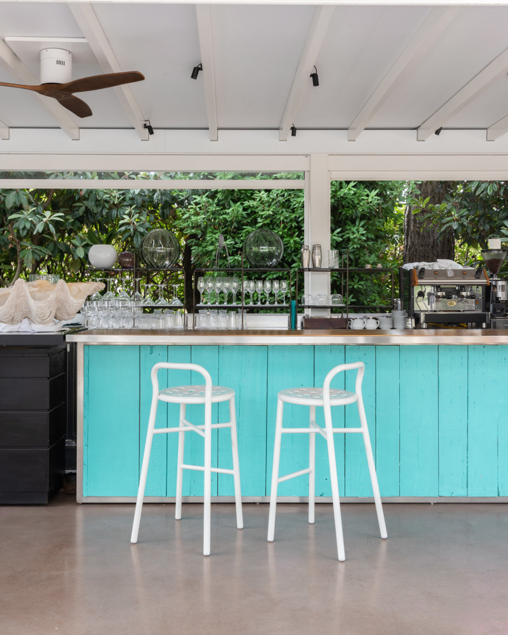 De minimalistische kruk is ontworpen door Jasper Morrison in 2009 en is gemaakt voor gebruik buitenshuis. Het combineert een technische uitstraling met subtiele elegantie – de constructie is gebaseerd op poedergecoate aluminium buizen en een geperforeerde aluminium zitting, die zorgt voor uitstekende waterafvoer en snelle droging.