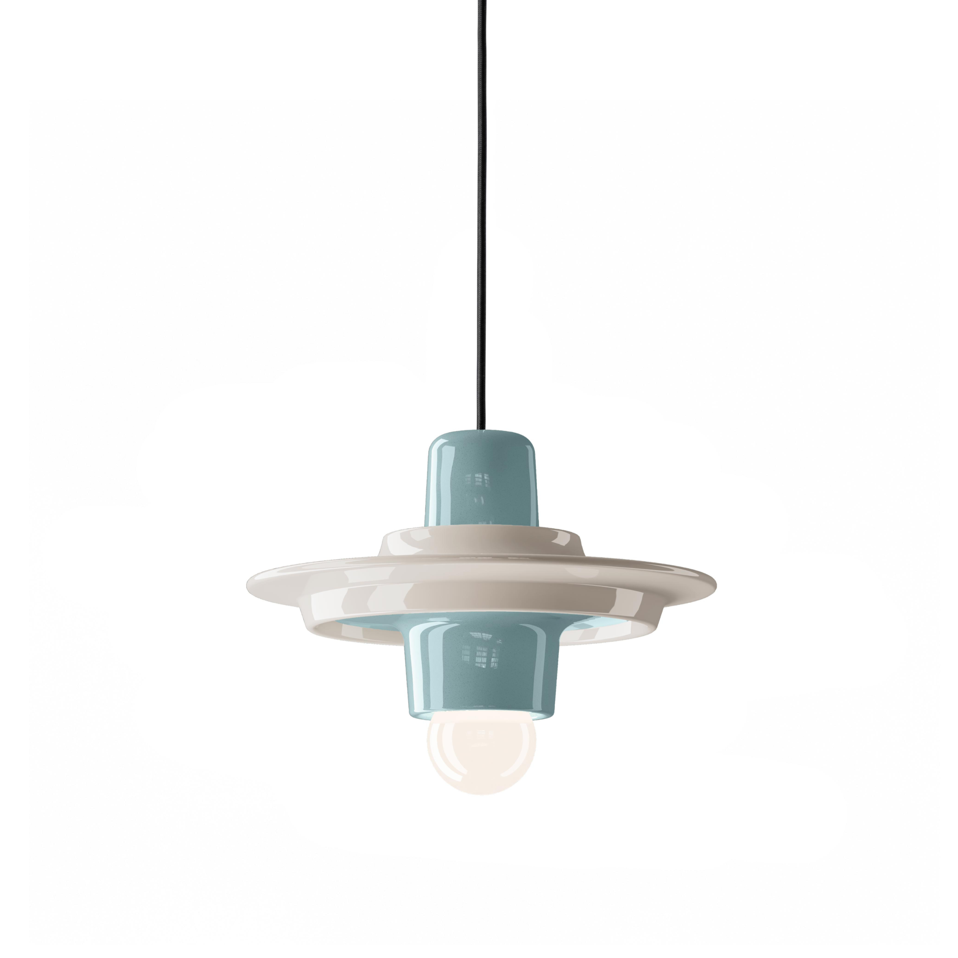 Hanglamp van keramiek VOILÀ crème met blauw
